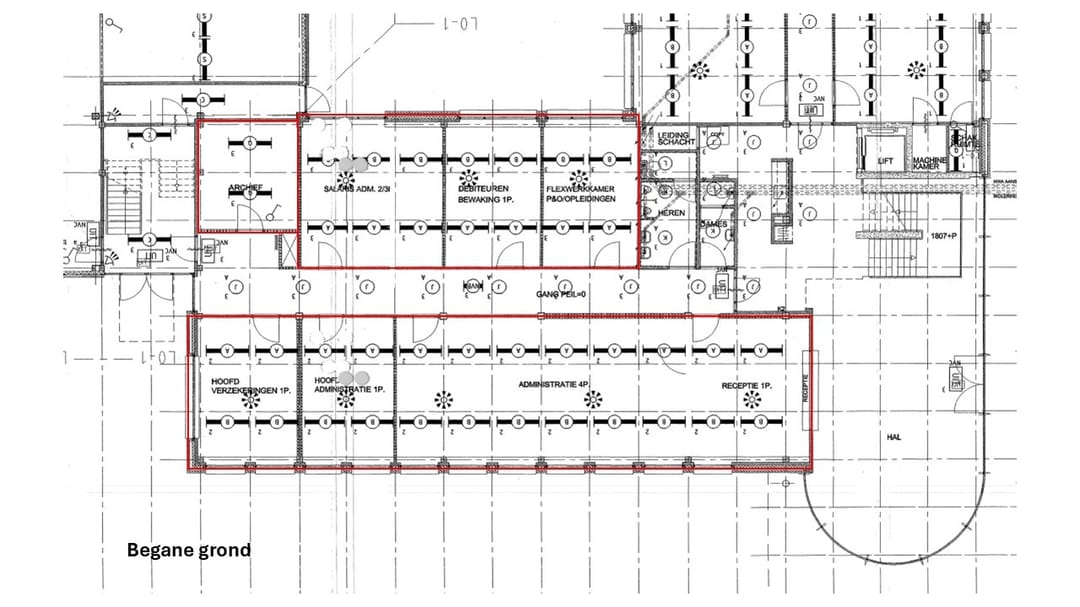 - Topkoeling, inbouwarmaturen, kabelgoten, systeemplafond, toilet, verwarming en kamerindeling