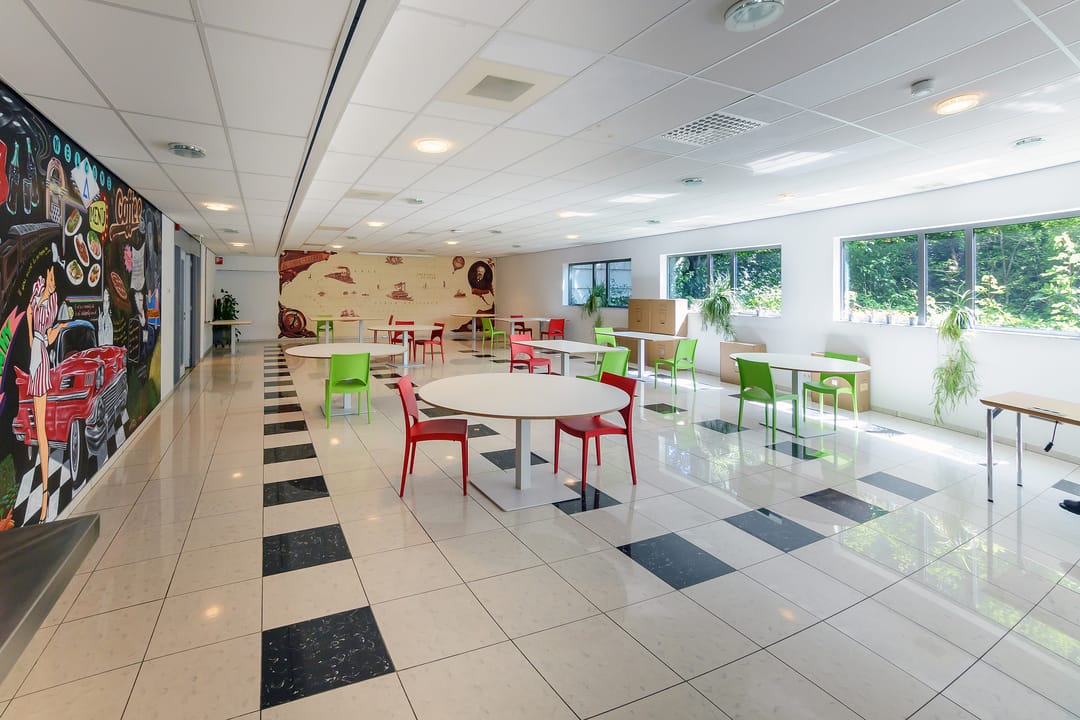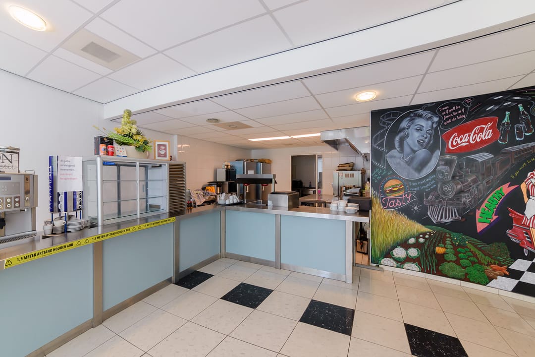 220m2 professioneel uitgeruste gezamenlijke kantine met een buitenterras, de catering wordt verzorgd door een professionele cateraar