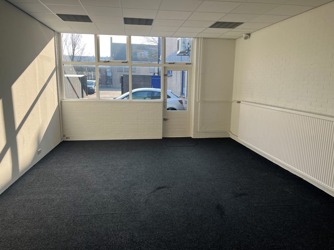 Eigen entree aan de straatkant. Kantoorruimte met pantry en toilet; doorgang naar achterkamer te gebruiken als kantoor of spreekkamer. In de achterkamer bevindt zich een deur naar privé parkeerterrein.