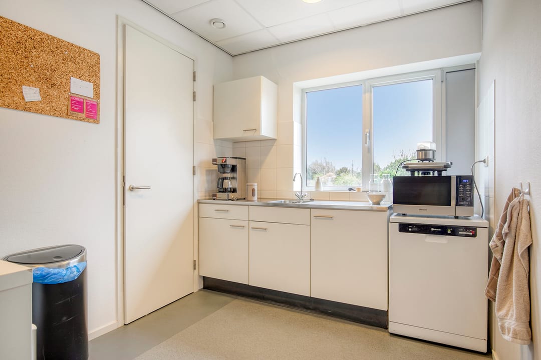 Het kantoor is volledig zelfstandig via een gemeenschappelijke hal, voorzien van eigen sanitair en kantine met keuken.