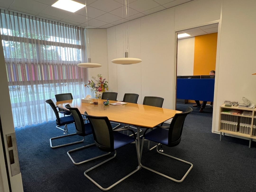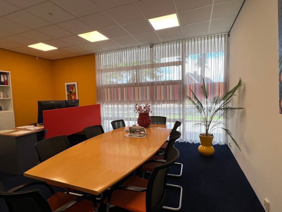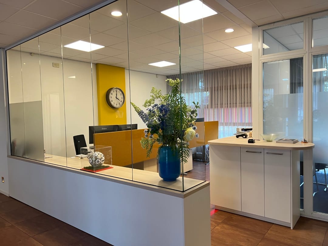 Entree, receptie, diverse kantoorruimtes, spreekkamer en een vergaderzaal, sanitair en pantry.