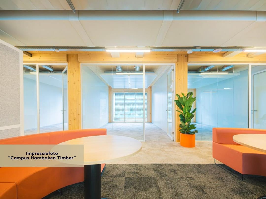 • Oplevering casco-staat: vloerafwerking, akoestische tegels, tapijt, hoge plafonds met LED-verlichting en zichtbare installaties;