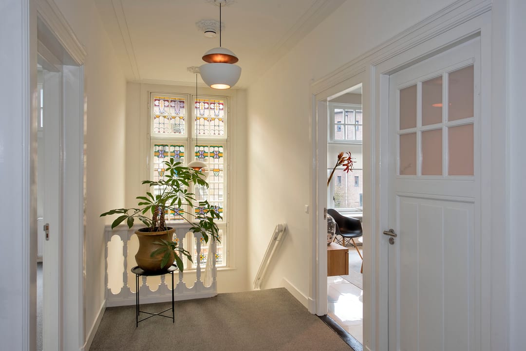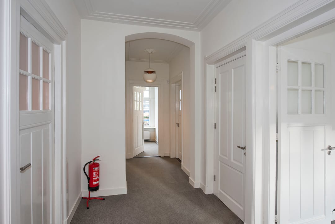 Het betreft zeer hoogwaardig afgewerkte kantoorruimten inclusief het aandeel in de algemene toegangsruimten zoals de entree, de hal en de keuken gesitueerd op de begane grond.