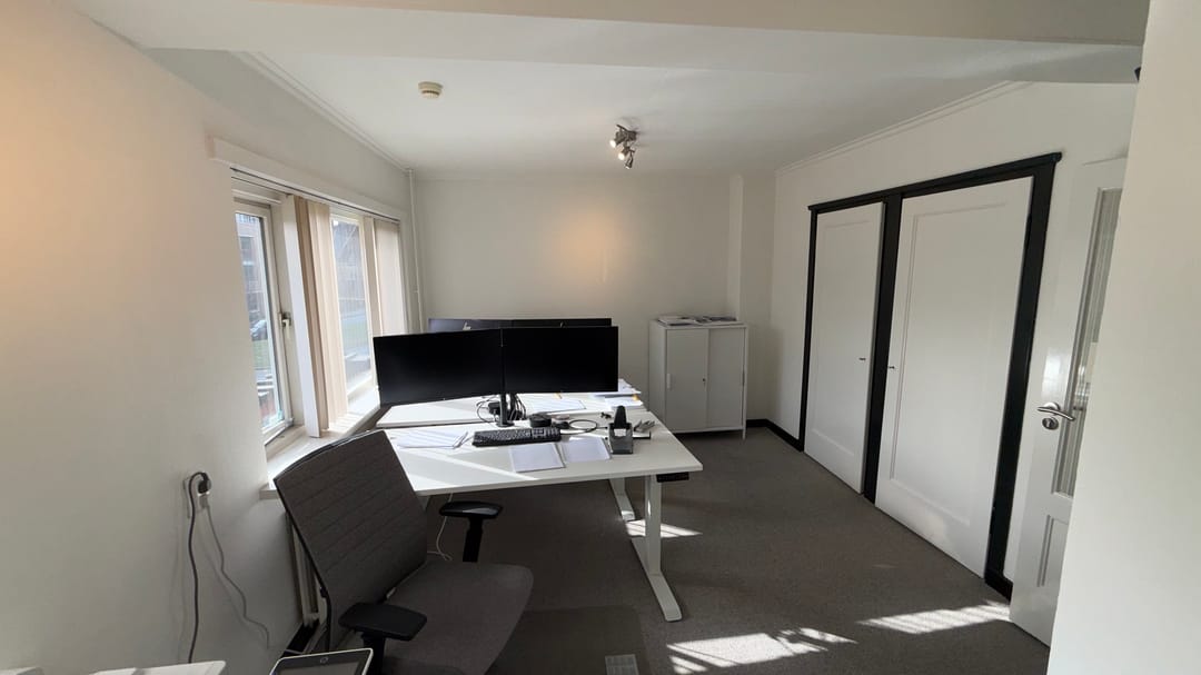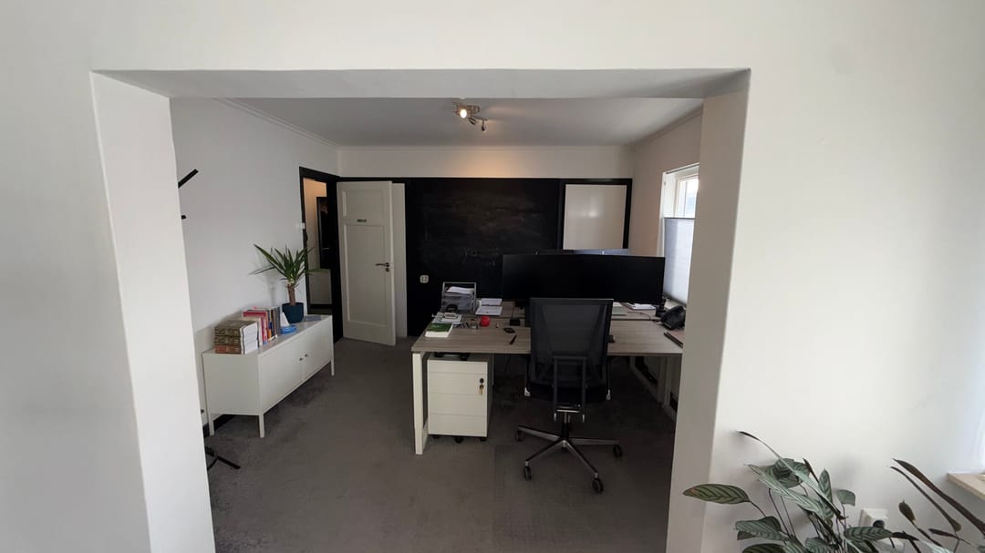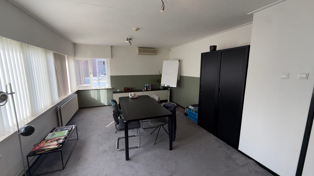 Eerste verdieping: circa 83 m², bestaande uit twee kantoorkamers en een archiefruimte, met medegebruik van pantry, toilet.