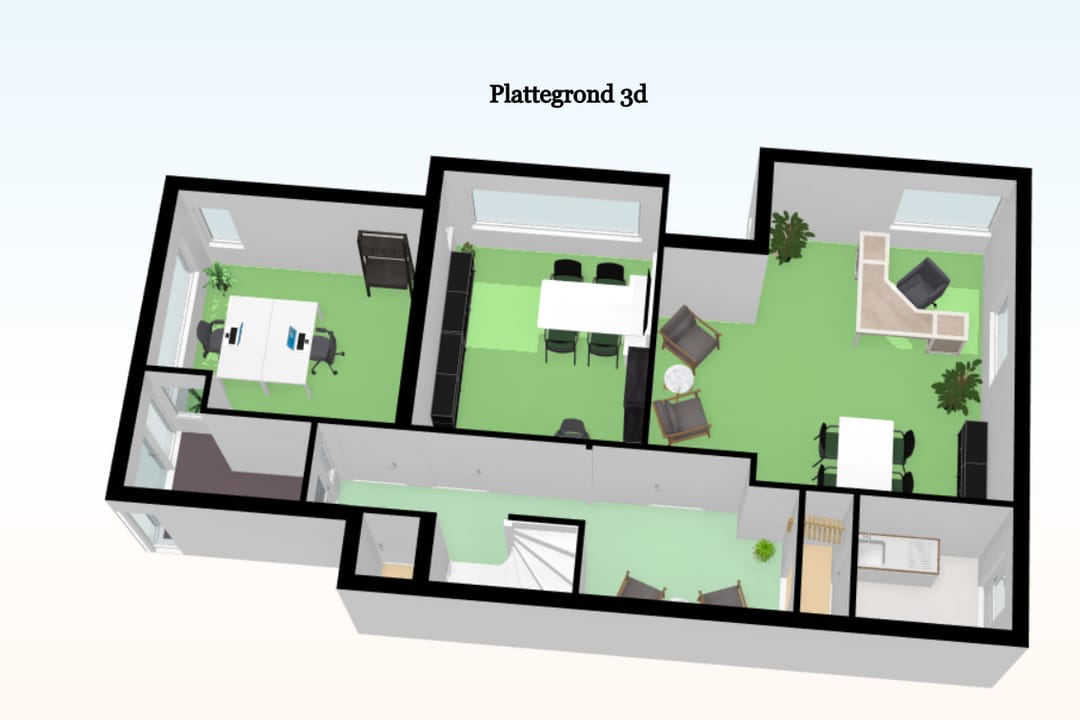 - Airconditioning, te openen ramen, kabelgoten, systeemplafond, toilet, pantry en verwarming