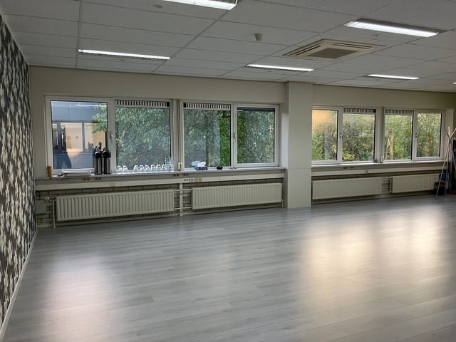 Het aangeboden kantoor wordt door de verhuurder gemoderniseerd met nieuwe plafondtegels voor het systeemplafond, energiezuinige LED-verlichting en neutraal gesausde wanden. De getoonde foto’s tonen nog de huidige afwerking. In de kantoren zijn wand- en vloergoten voor databekabeling aanwezig en is het kantoor voorzien van een airco-installatie. De huidige grijze laminaatvloer blijft achter en kan worden gebruikt of, op eigen kosten, worden vervangen door een eigen laminaat- of pvc-vloer.