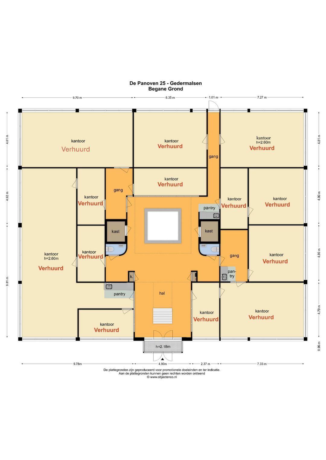 De door Van der Horst Bedrijfsmakelaardij en verhuurder verstrekte informatie dient uitsluitend te worden gezien als een uitnodiging tot nader overleg. Hoewel de informatie met de grootst mogelijke zorg is samengesteld wordt noch door de makelaar, noch door diens opdrachtgever, ingestaan c.q. aansprakelijkheid aanvaard voor de juistheid dan wel volledigheid van de verstrekte, nog te verstrekken of vermelde gegevens. Aan afwijkingen in de tekst, maten en tekeningen kunnen dan ook geen rechten worden ontleend.