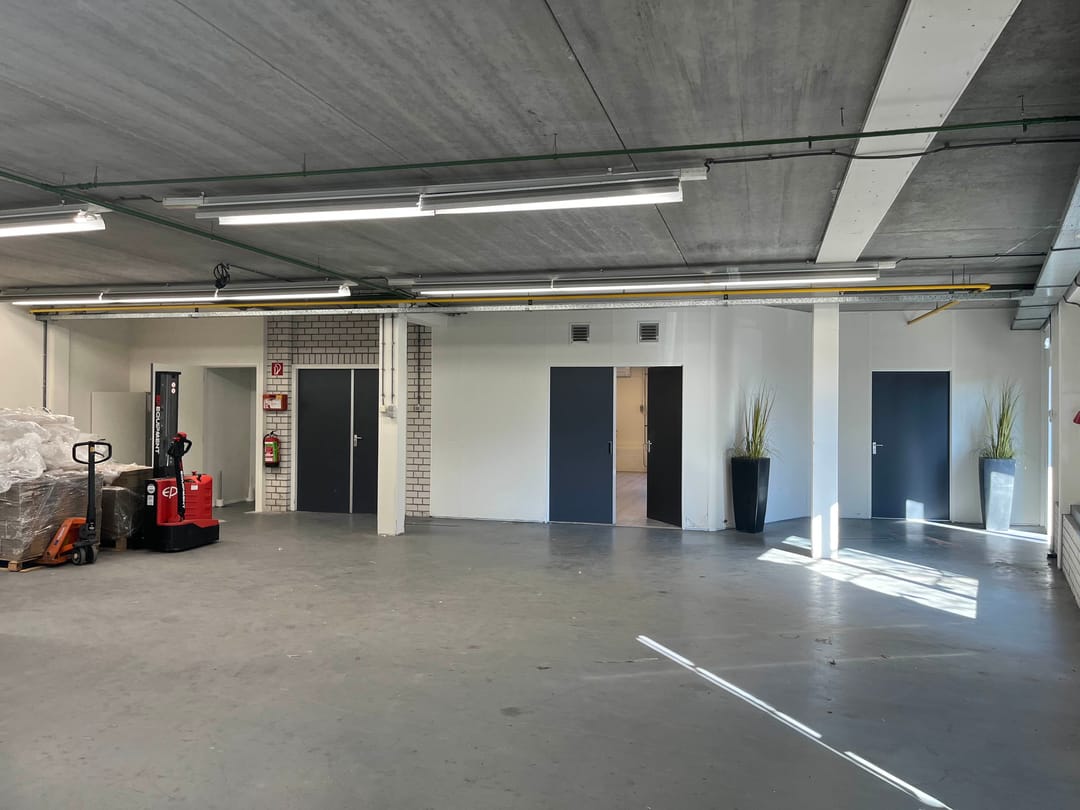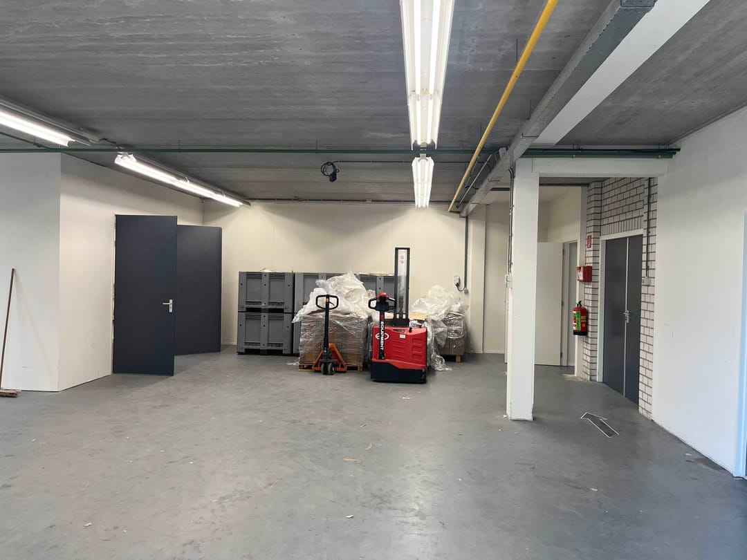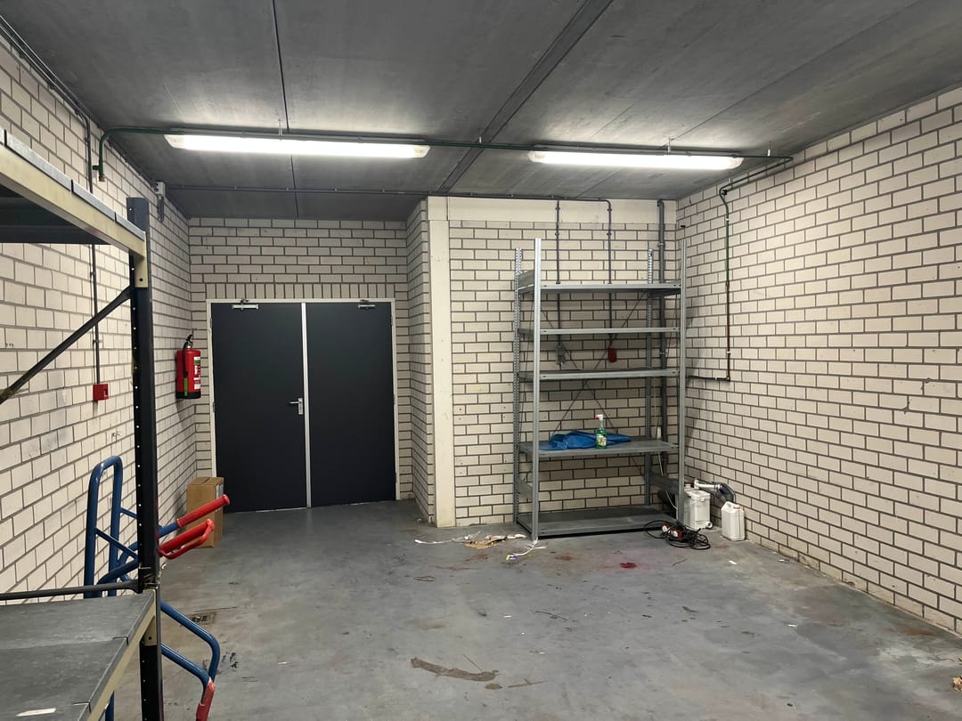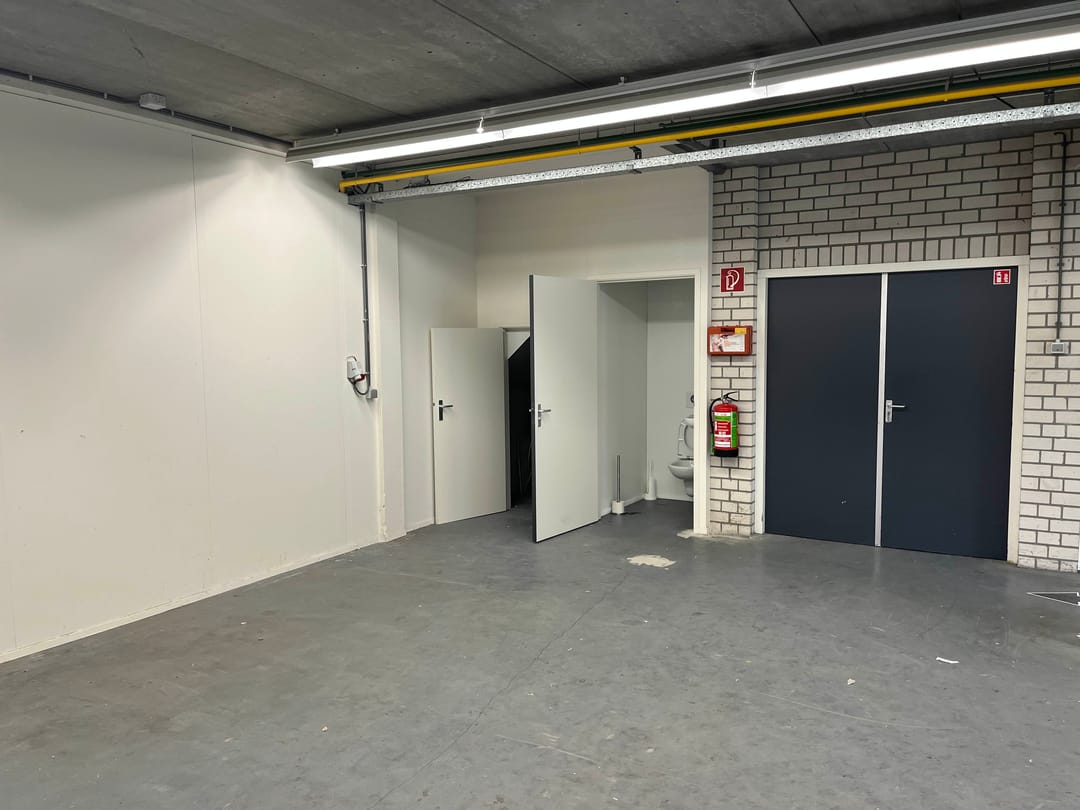 De bedrijfshal (totaal circa 170 m2) beschikbaar via de zijingang van het pand wat volledig een betonnen vloer heeft. Waarbij je ook nog 2 opbergruimtes hebt ter beschikking. Daarbij aansluitend zit de ruime Kantoorruimte met volop licht inval wat dan ook volledig verwarmd is met radiatoren.