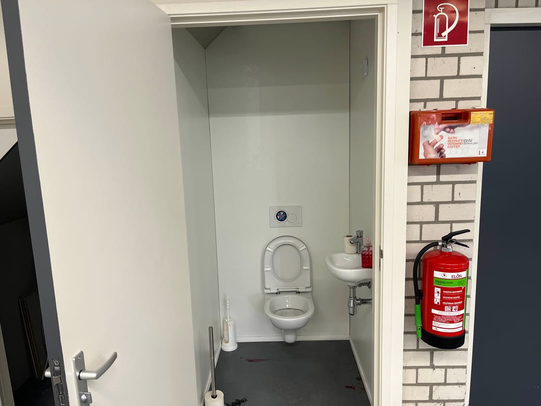 - Krachtstroom, betonvloer, toilet, pantry, inbouwarmaturen en te openen ramen