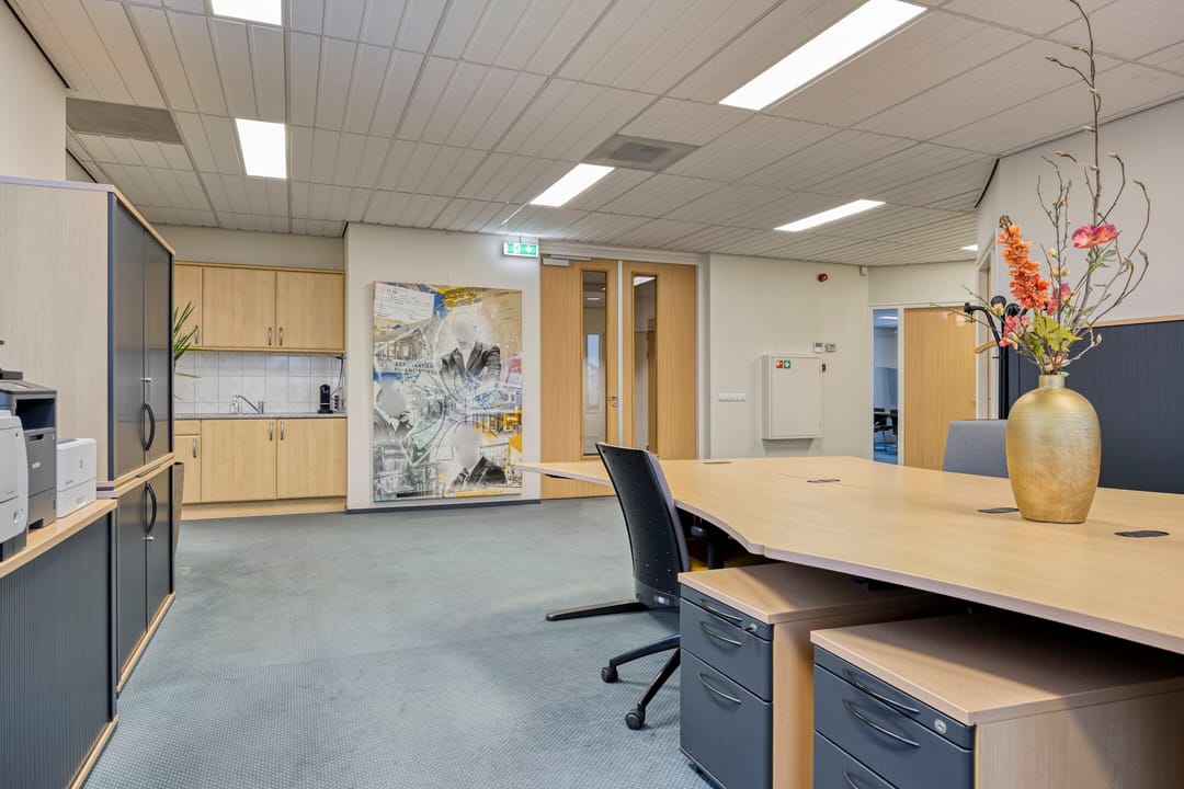 De kantoorruimte is bereikbaar met trap en lift. Het is verdeeld in 2 separate kantoren waarvan ook een deel uitermate geschikt is als separate spreekkamer. Het wordt turn-key opgeleverd en is voorzien van vloerbedekking, systeemplafond met inbouwverlichting. Men heeft de beschikking over een eigen pantry met koelkast en spoelbak. Het is te verwarmen middels radiatoren en te koelen met topkoeling.