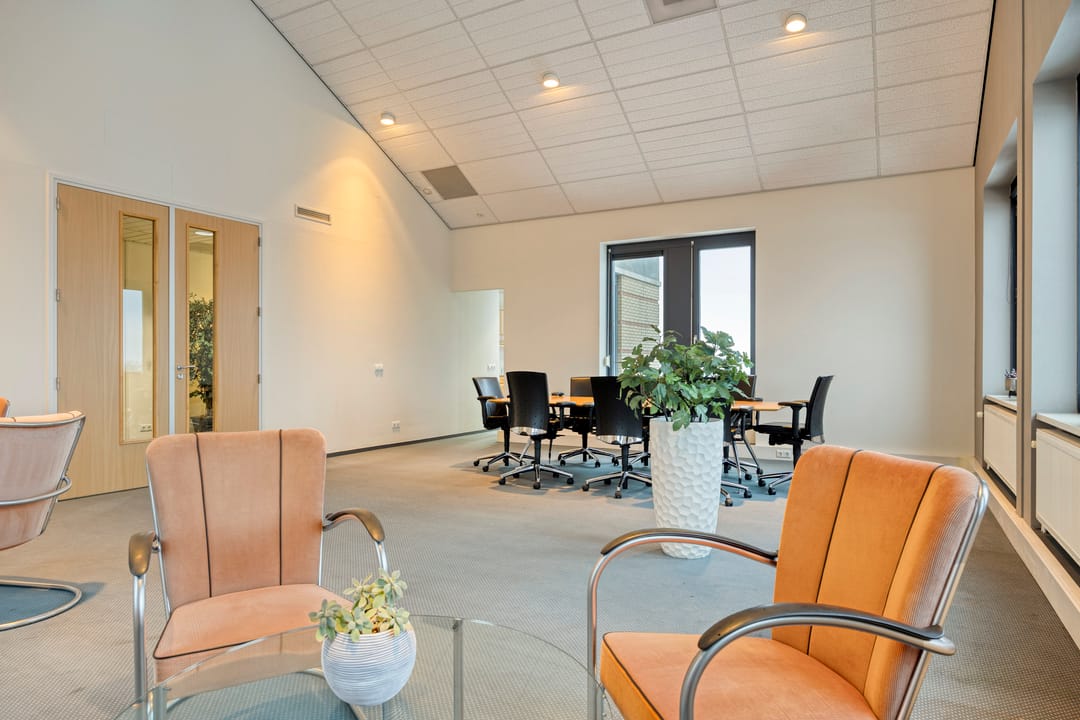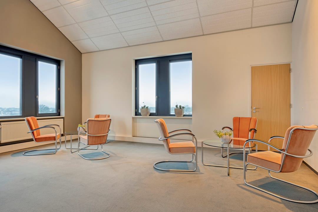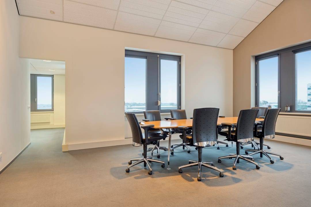 Op dezelfde etage is een vergaderruimte die in overleg met verhuurder beschikbaar is voor tijdelijk gebruik.