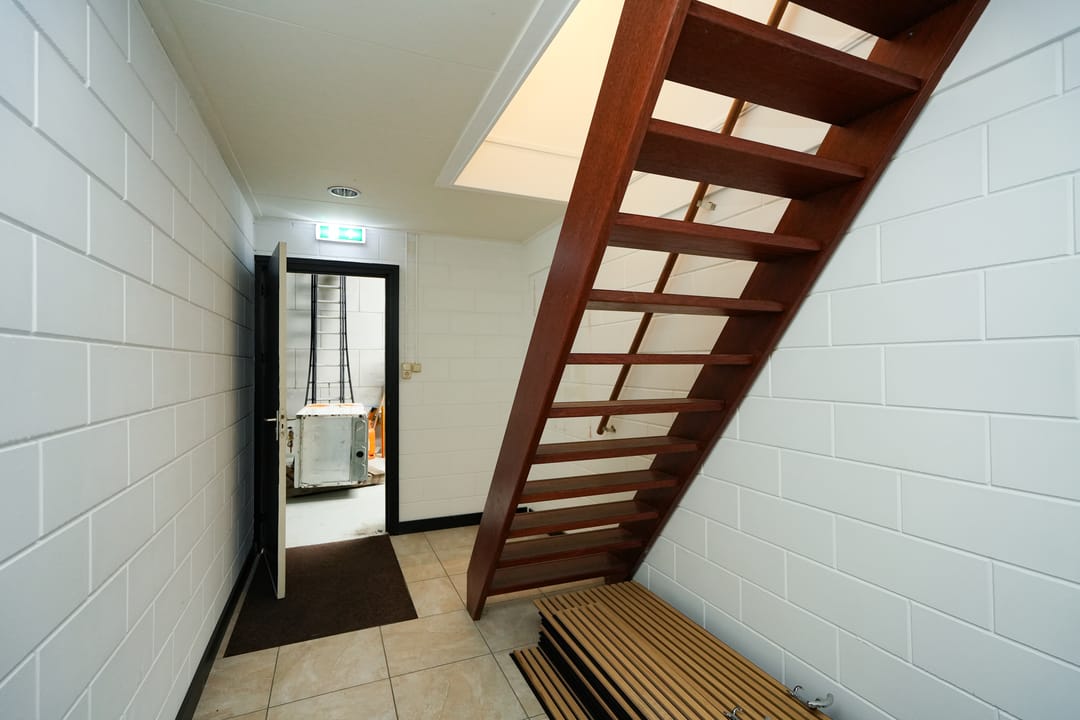 Begane grond: Eigen entree. Hal, waaraan de meterkast, was-/toiletruimte, kantine en opslagruimte. Eerste etage: overloop, waaraan 2 kantoorruimten.