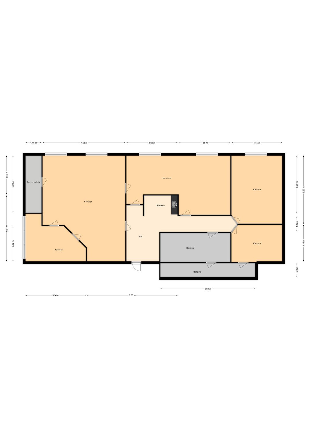 - Airconditioning, mechanische ventilatie, inbouwarmaturen, te openen ramen, kabelgoten, systeemplafond, toilet, pantry, verwarming en kamerindeling