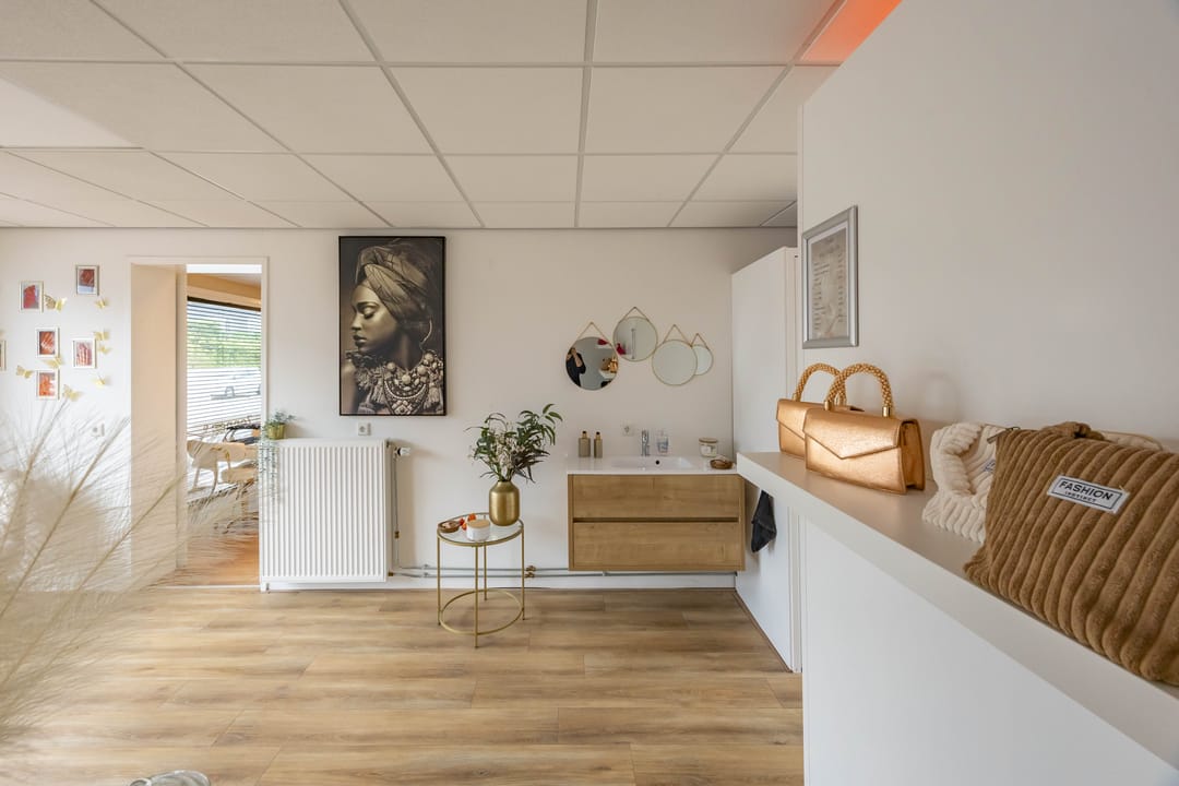 Op de begane grond vind je verder diverse bedrijfsruimtes zoals een kantoorruimte van ca. 12 m² en drie overige bedrijfsruimtes met een gezamenlijk oppervlak van ca. 46 m². De salon beschikt over een eigen ingang en toiletruimte inclusief wastafel. Kortom, mogelijkheden genoeg!