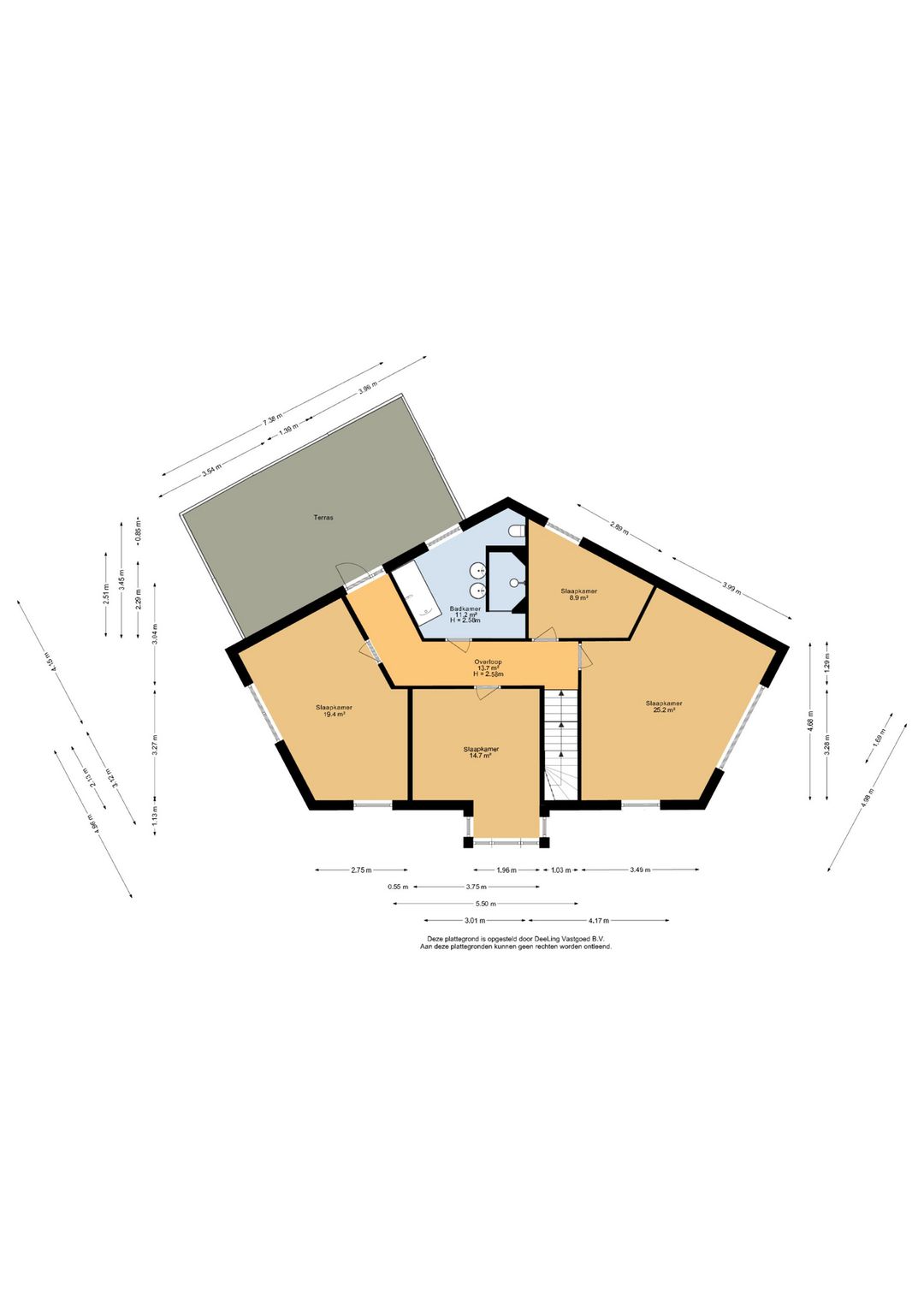 Op de eerste verdieping bevinden zich vier ruime slaapkamers van ca. 25, 19, 15 en 9 m². De badkamer van ca. 11 m² is luxe uitgevoerd met een ligbad, douche, dubbele wastafel en toilet. Vanuit de overloop heb je toegang tot een royaal dakterras van ca. 30 m² waar je heerlijk kunt ontspannen.