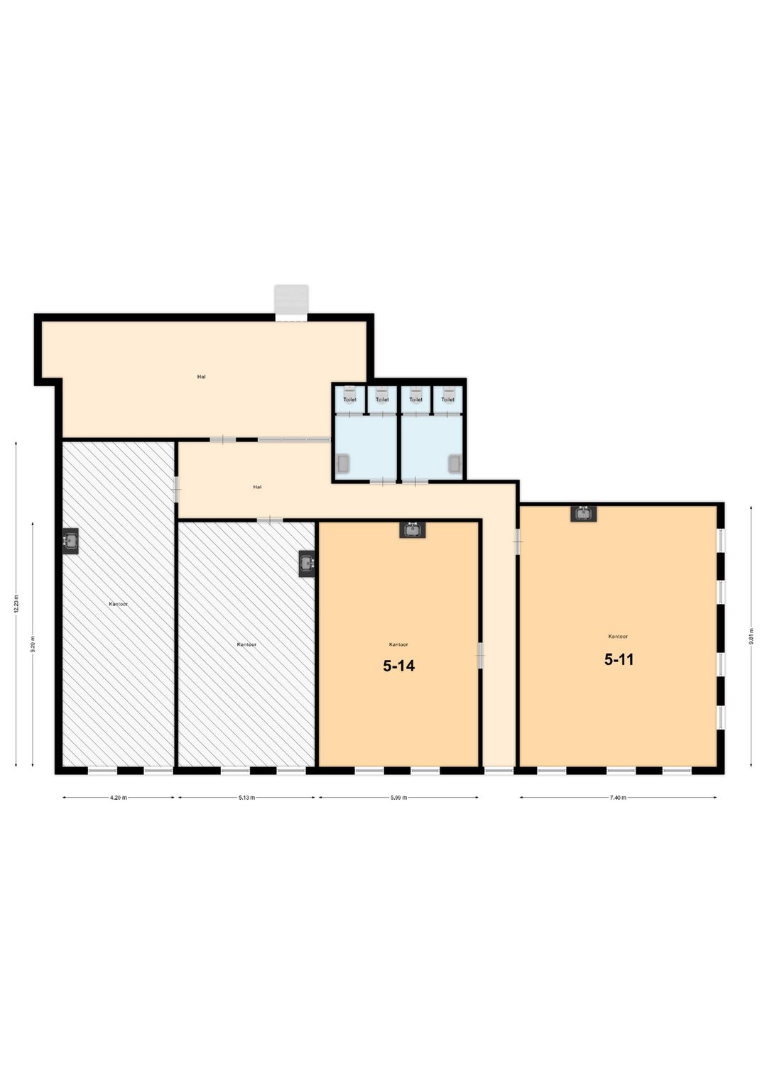 Voor meer duidelijkheid: zie plattegrond, het betreft ruimte 5-14