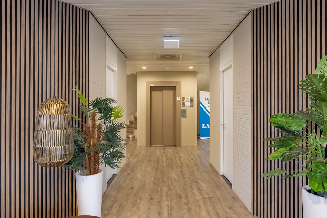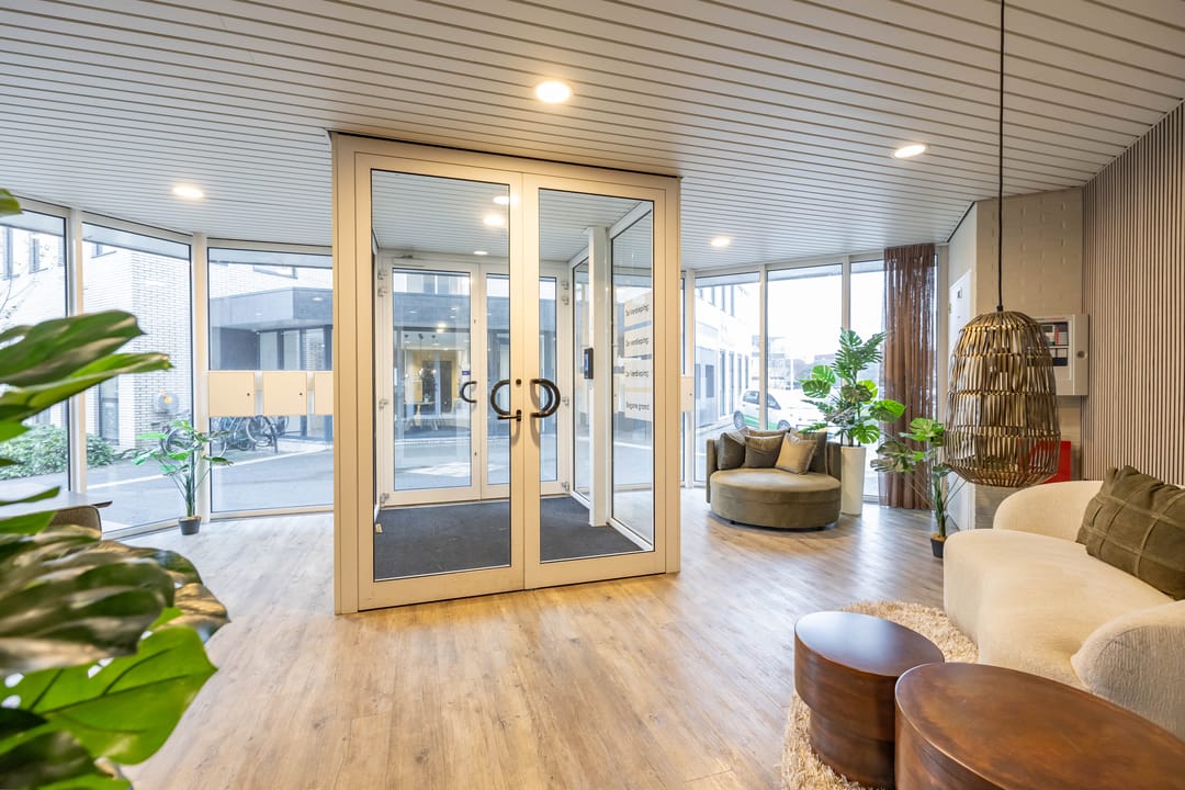 De entree op de begane grond heeft recent een upgrade ondergaan en beschikt over een moderne en representatieve uitstraling. De gemeenschappelijke hal biedt bezoekers de mogelijkheid om comfortabel plaats te nemen. De entree is uitgerust met een geavanceerd toegangscontrolesysteem dat op afstand bedienbaar is via een videoverbinding, wat bijdraagt aan extra veiligheid en controle.