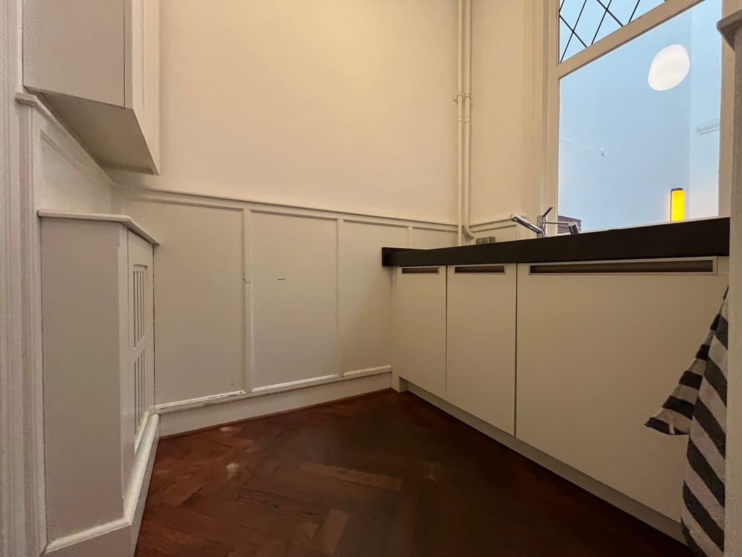 - Inbouwarmaturen, te openen ramen, toilet, pantry, verwarming en kamerindeling