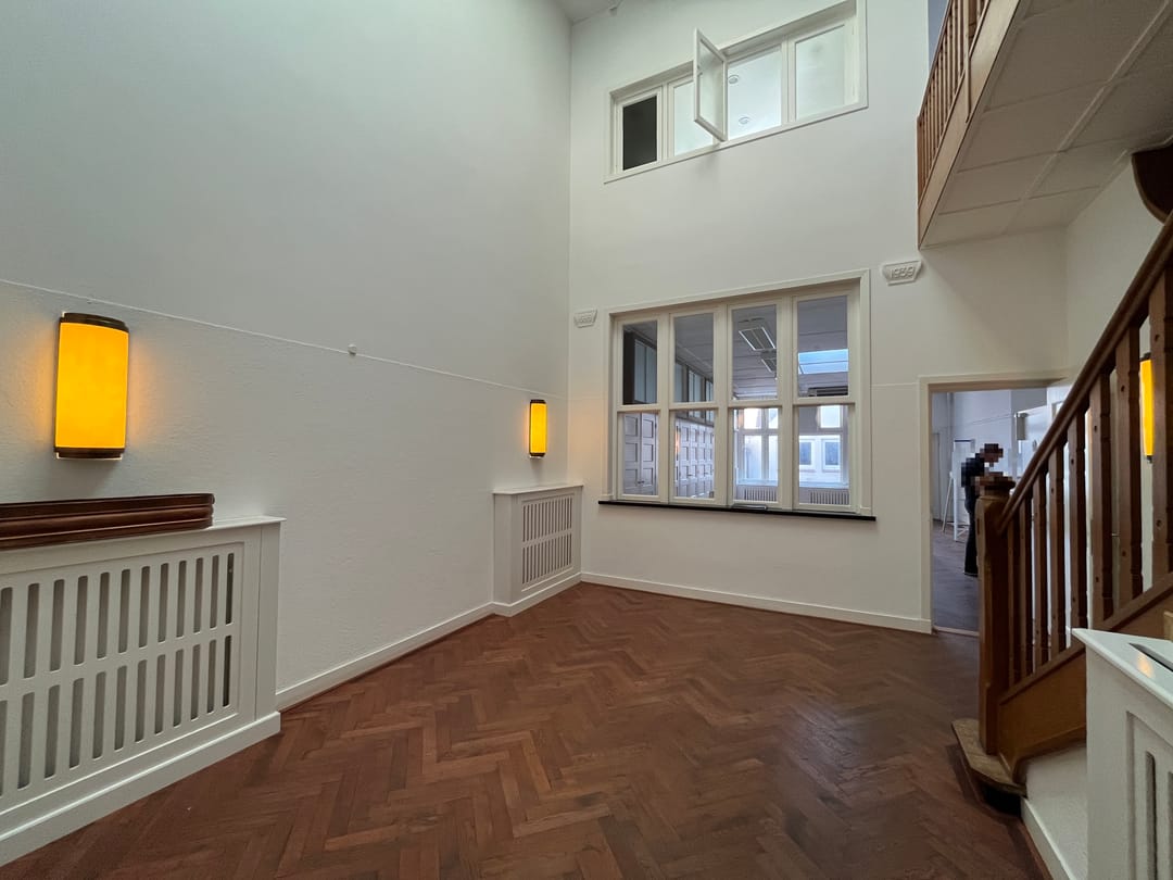 Namens onze opdrachtgever bieden wij een prachtige karakteristiek kantoorpand aan op uitstekende locatie welke voor uiteenlopende functies gebruikt kan worden. Het pand telt totaal circa 300 m² NVO verdeeld over drie verdiepingen. Het geheel is prachtig verbouwd met respect voor de karakteristieke elementen. De pantry en het sanitair zijn onlangs vernieuwd. Kenmerkend voor het pand is het centrale trappenhuis welke prachtig verlicht wordt door de lichtkoepel. Een groot deel van de vloeren is voorzien van een stijlvol visgraatparket. Achterin het pand is er een toegang tot de patio en ook op de verdieping is er een balkon aan de voorzijde alsmede een buitenruimte die gebuikt kan worden als dakterras.