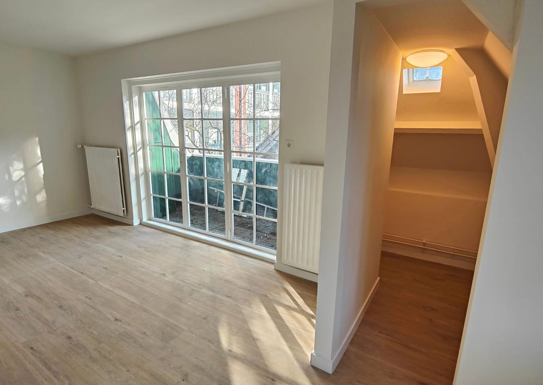 De verdieping is praktisch ingedeeld en bestaat uit vier separate ruimtes, meerdere vaste kasten en eigen sanitaire voorzieningen (toilet en douche). Daarnaast beschikt de etage over een zonnig balkon, een heerlijke plek voor een kop koffie of lunch. Op korte termijn wordt een pantry geplaatst.