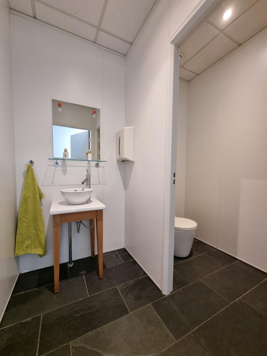 • toiletgroep dames / heren met voorportaal v.v. wasbak