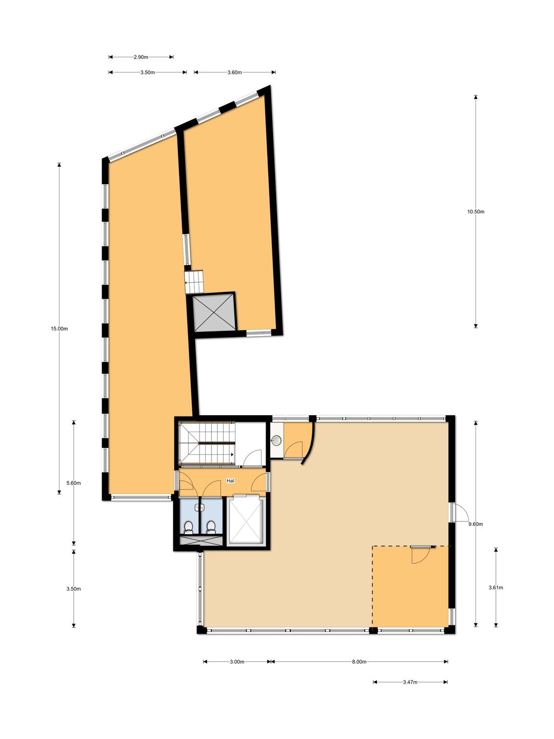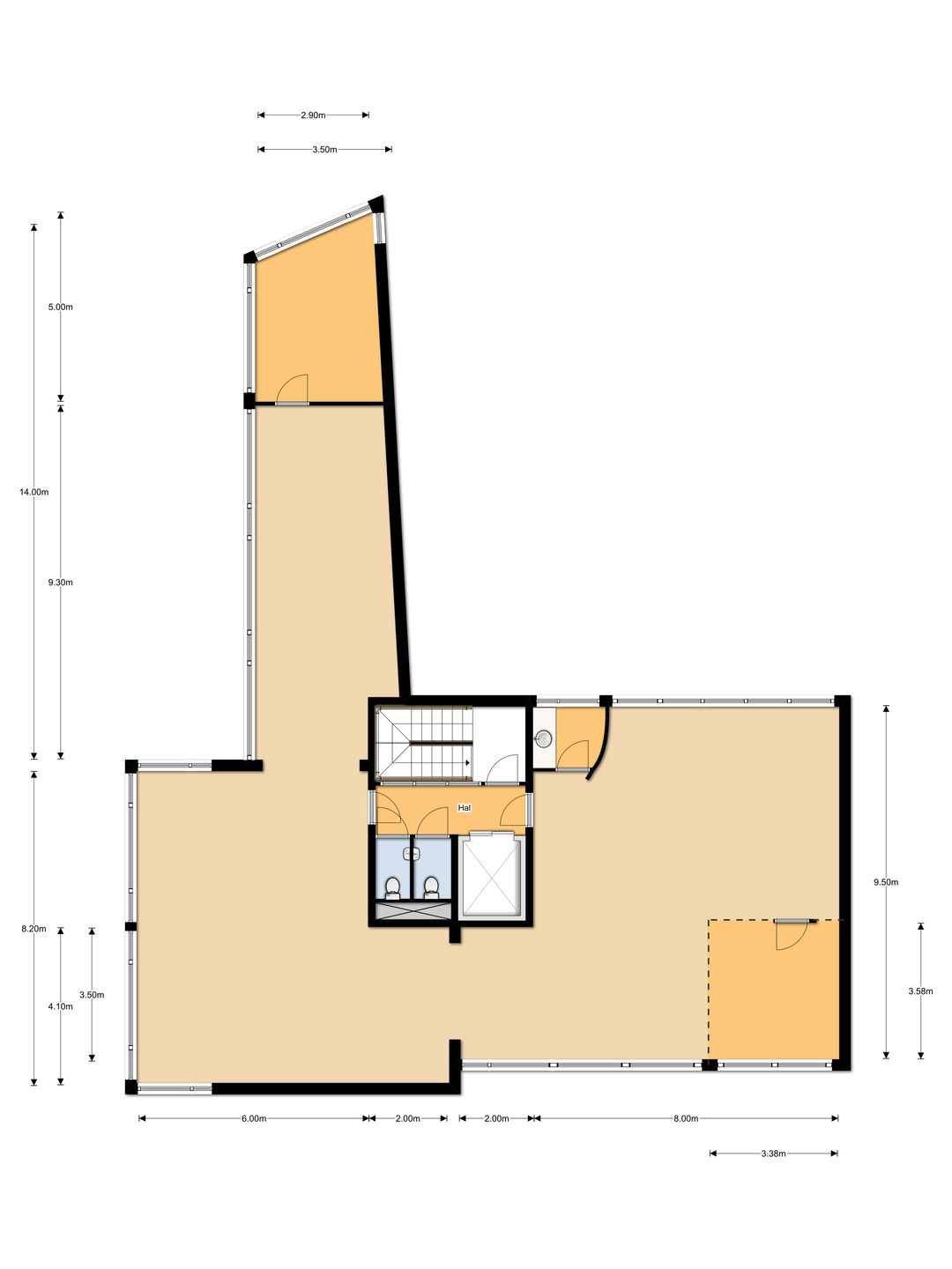 Oppervlakte totaal ca. 185 m2