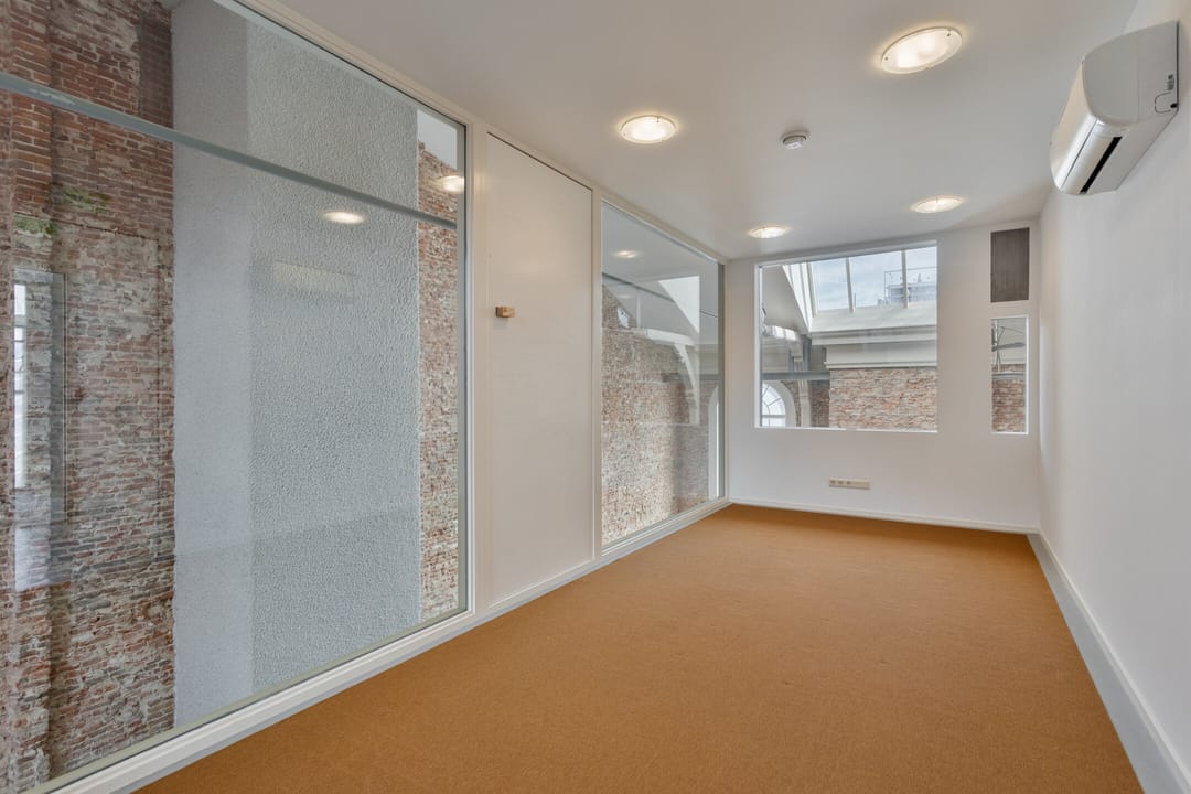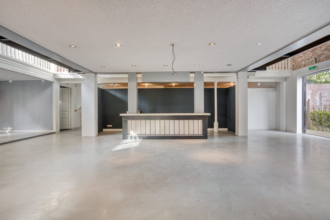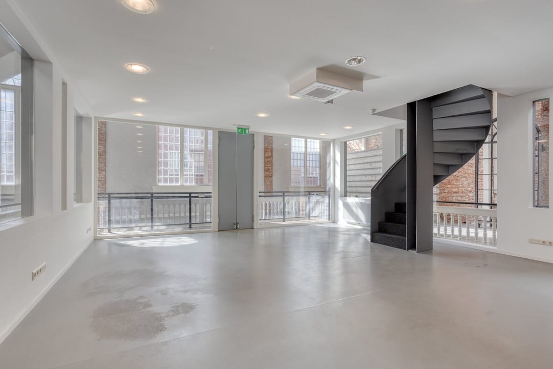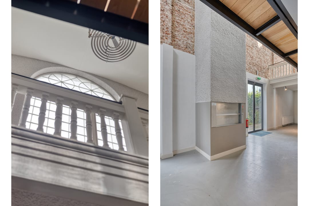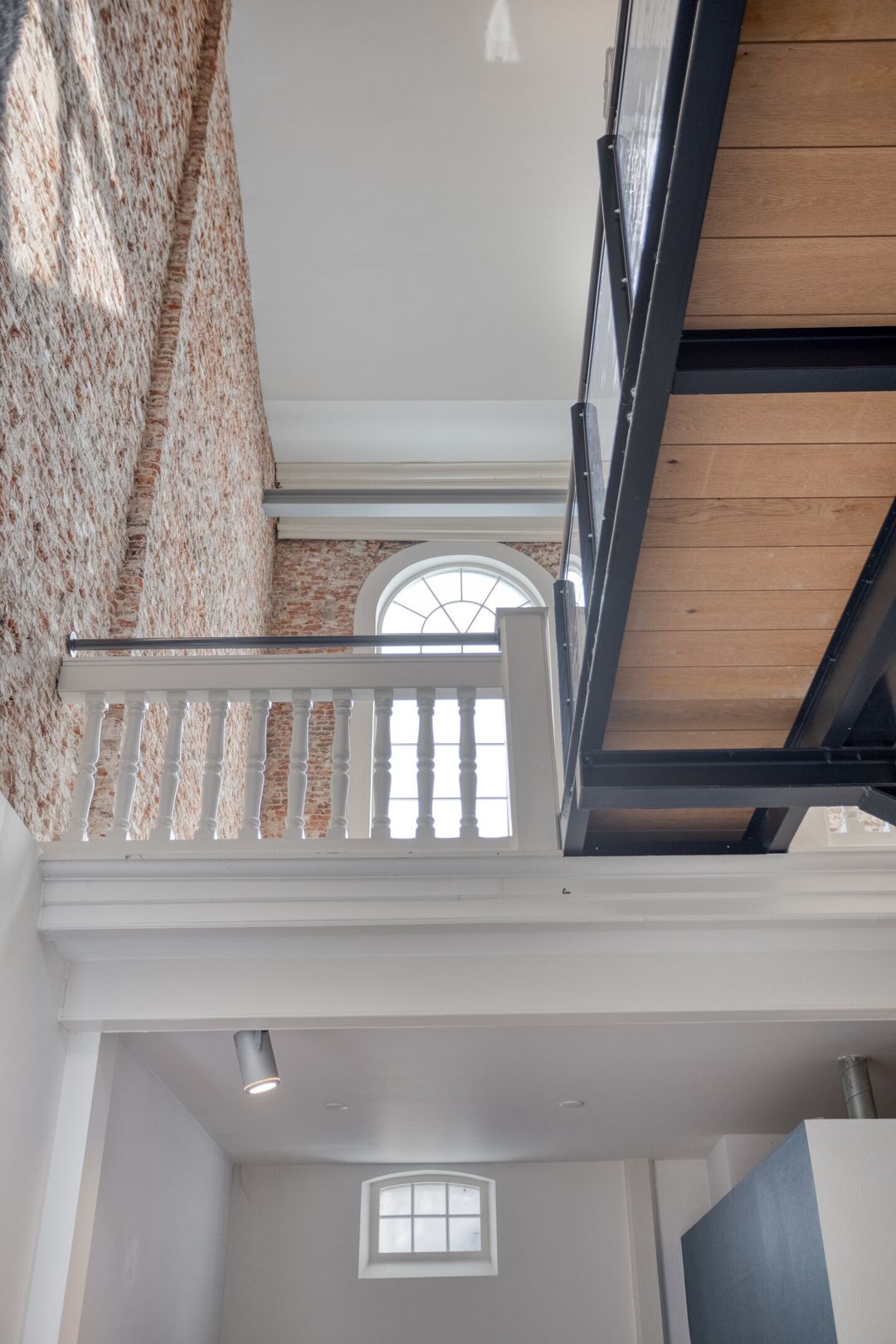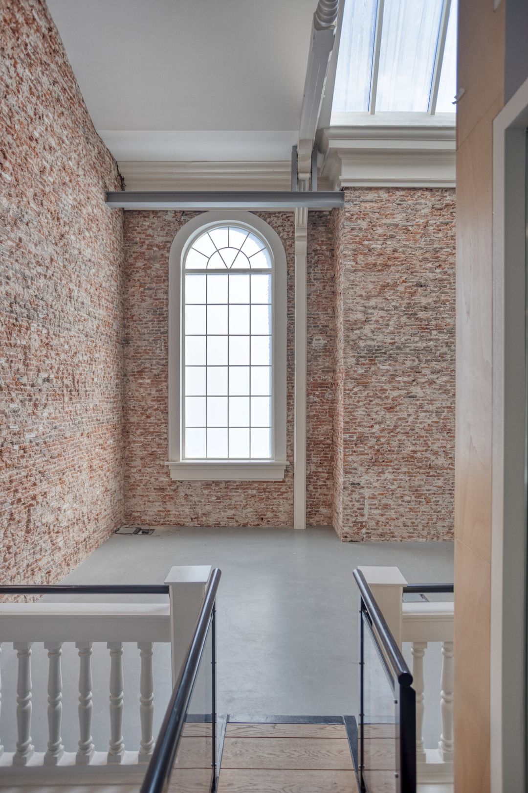 Aan beide zijden van het pand bevindt zich een trap naar de eerste verdieping, waar je uitkomt op een ruime balustrade. In het hart van het gebouw, vanaf de eerste verdieping, bevindt zich een zwevende kantoorunit met ruimte voor drie afzonderlijke vergader- of kantoorruimtes. De grote, hoge ramen zorgen voor een prachtige lichtinval en benadrukken het ruimtelijke monumentale gevoel van het pand. De inrichting combineert industriële materialen zoals staal, beton, glas en ruwmetselwerk voor een moderne en rustieke uitstraling. Er is tevens geïnvesteerd in onder andere 50 zonnepanelen, muurisolatie en een hybride warmtepomp. Hierdoor is het pand niet alleen energiezuinig, maar ook geschikt gemaakt voor veelzijdig en toekomstgericht gebruik.
