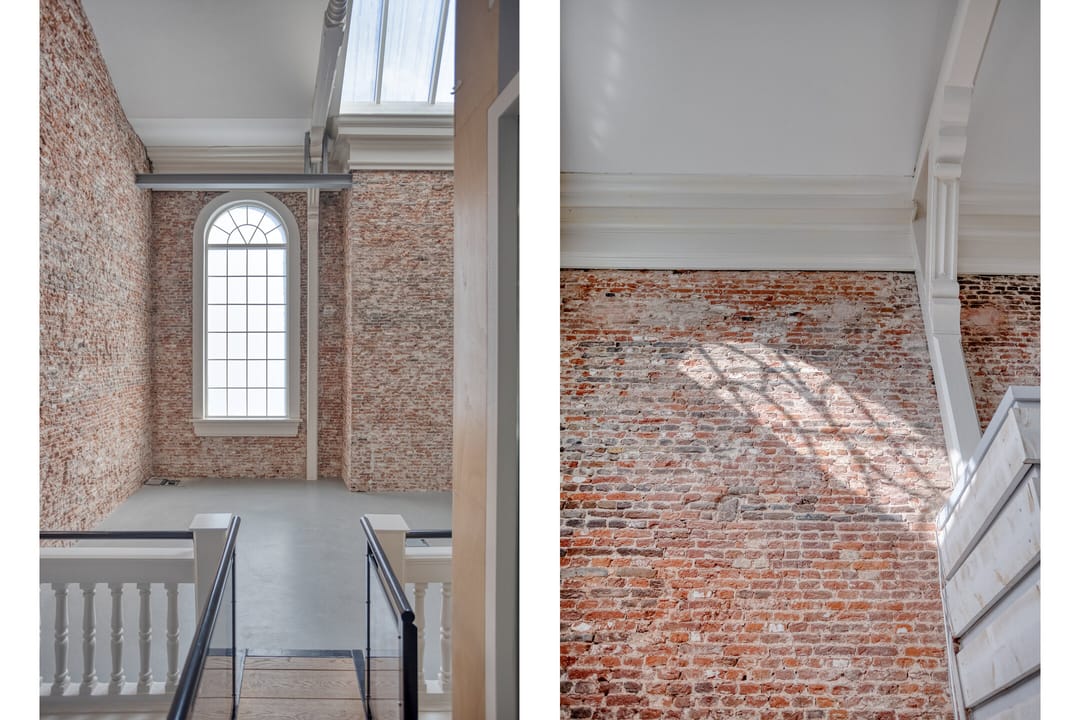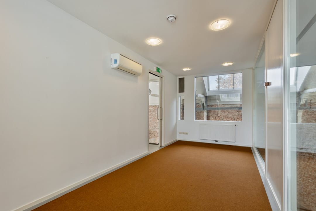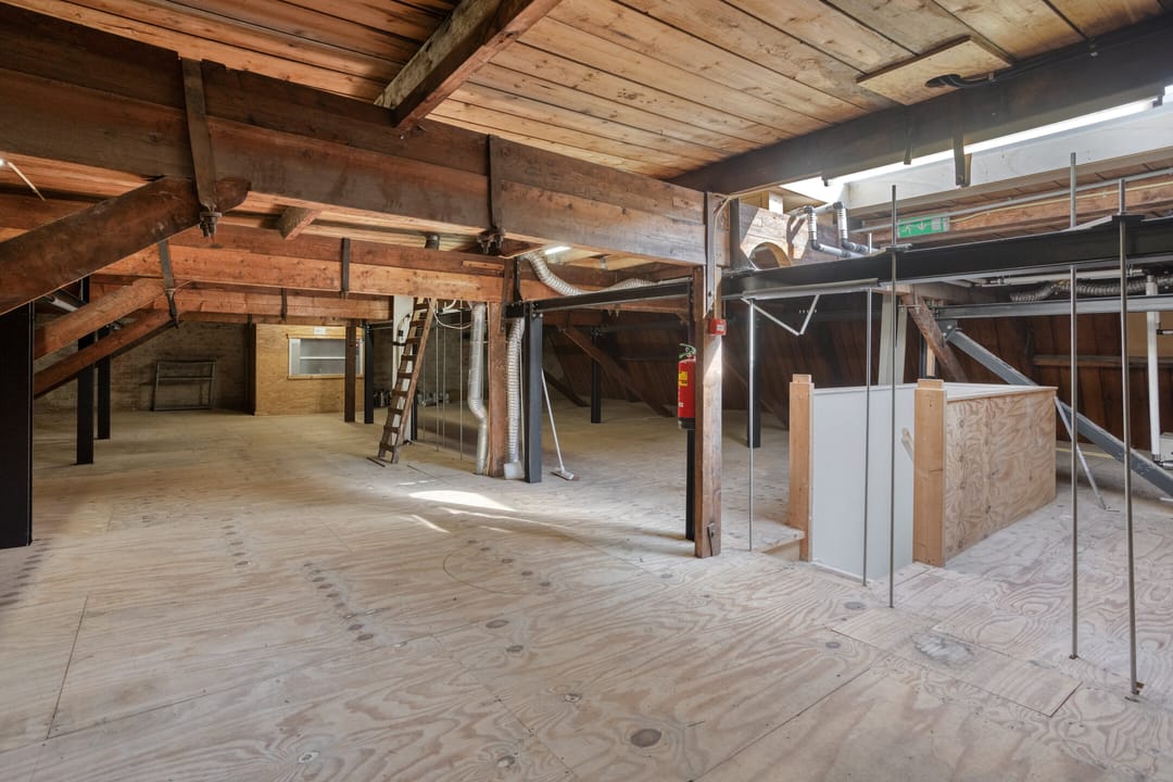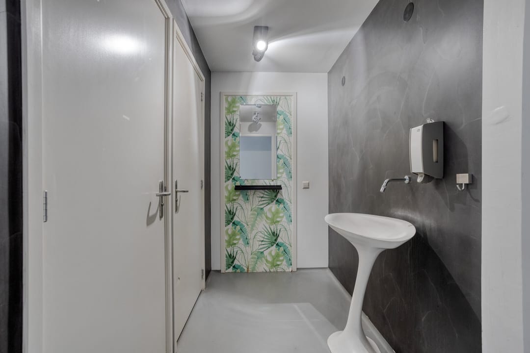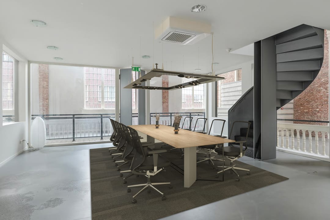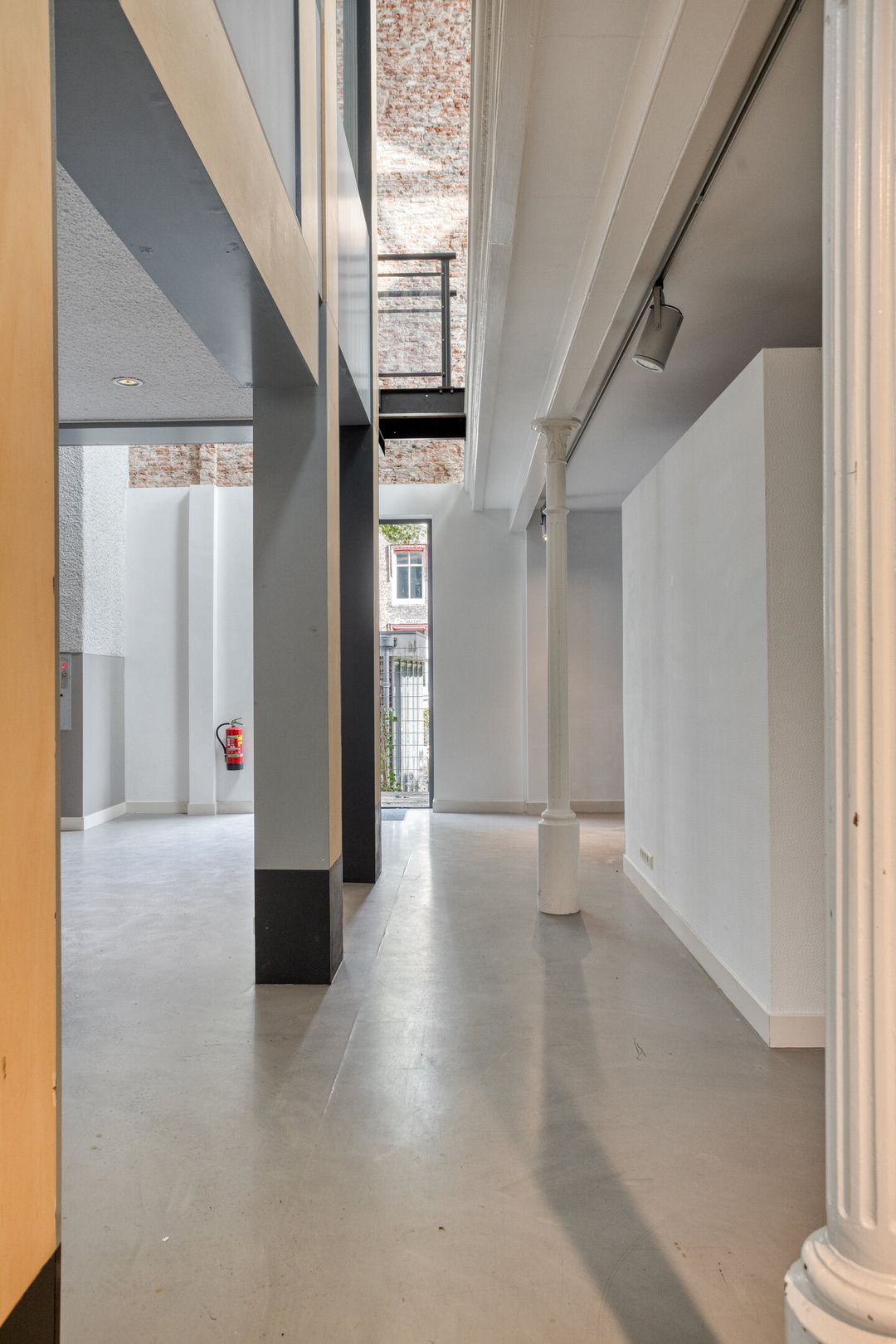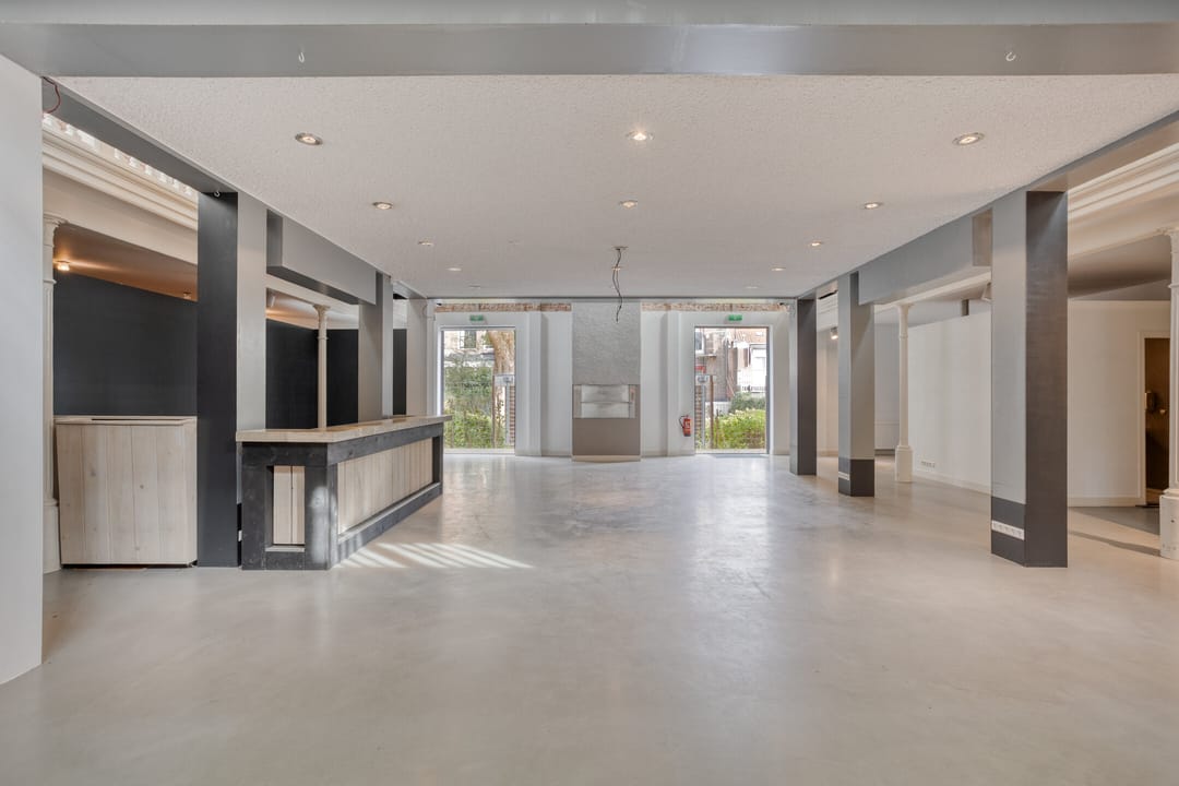 Aan beide zijden van het pand bevindt zich een trap naar de eerste verdieping, waar je uitkomt op een ruime balustrade. In het hart van het gebouw, vanaf de eerste verdieping, bevindt zich een zwevende kantoorunit met ruimte voor drie afzonderlijke vergader- of kantoorruimtes. De grote, hoge ramen zorgen voor een prachtige lichtinval en benadrukken het ruimtelijke monumentale gevoel van het pand. De inrichting combineert industriële materialen zoals staal, beton, glas en ruwmetselwerk voor een moderne en rustieke uitstraling. Er is tevens geïnvesteerd in onder andere 50 zonnepanelen, muurisolatie en een hybride warmtepomp. Hierdoor is het pand niet alleen energiezuinig, maar ook geschikt gemaakt voor veelzijdig en toekomstgericht gebruik.