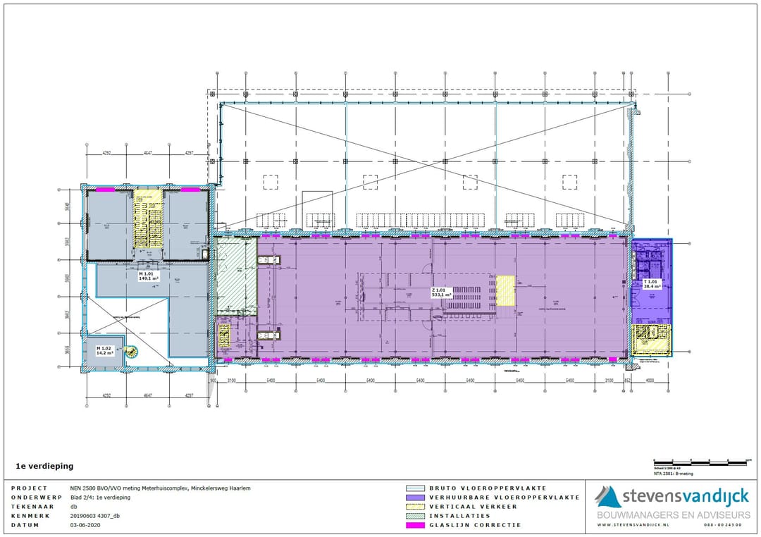 De totale oppervlakte bedraagt ca. 648 m² v.v.o. conform NEN2580.