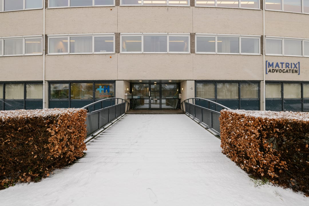 Derde verdieping: entree, toegang tot gemeenschappelijke toiletten en keuken, toegang tot hal met drie kantoorkamers waarvan de grootste toegang heeft tot het dakterras en één kamer een eigen berging/kantoor.