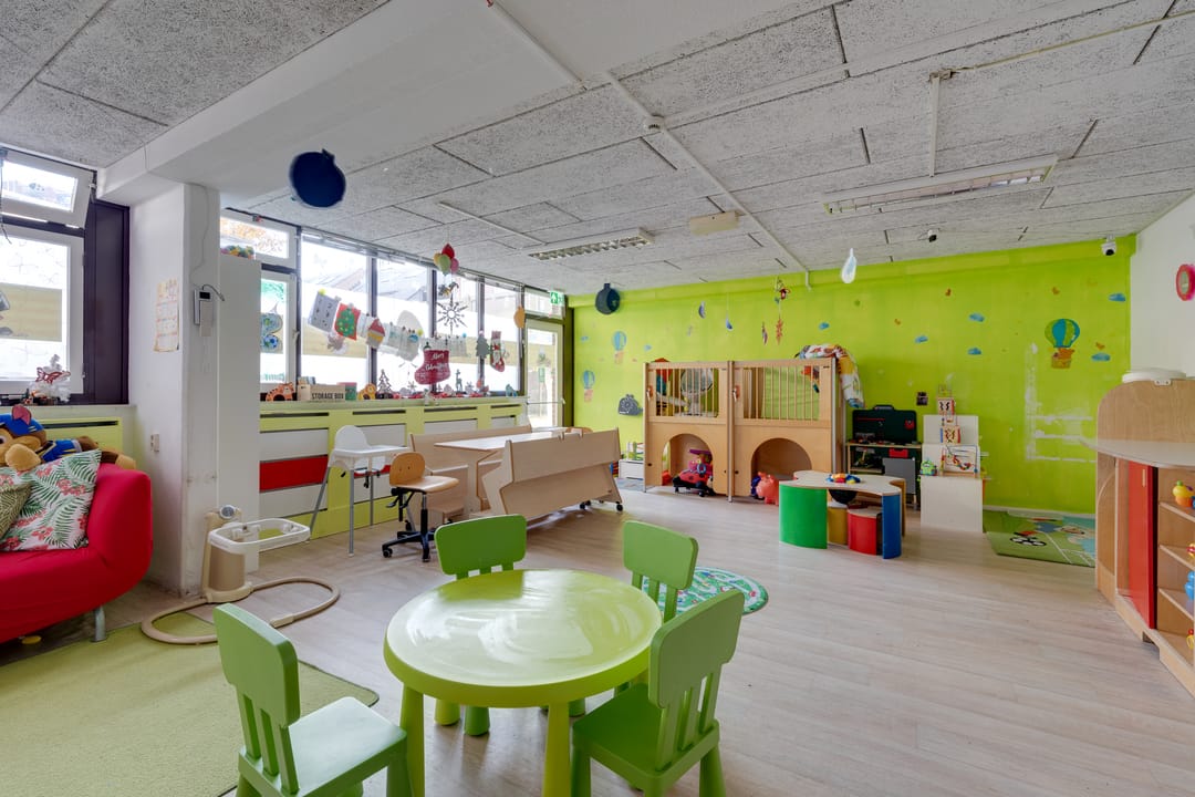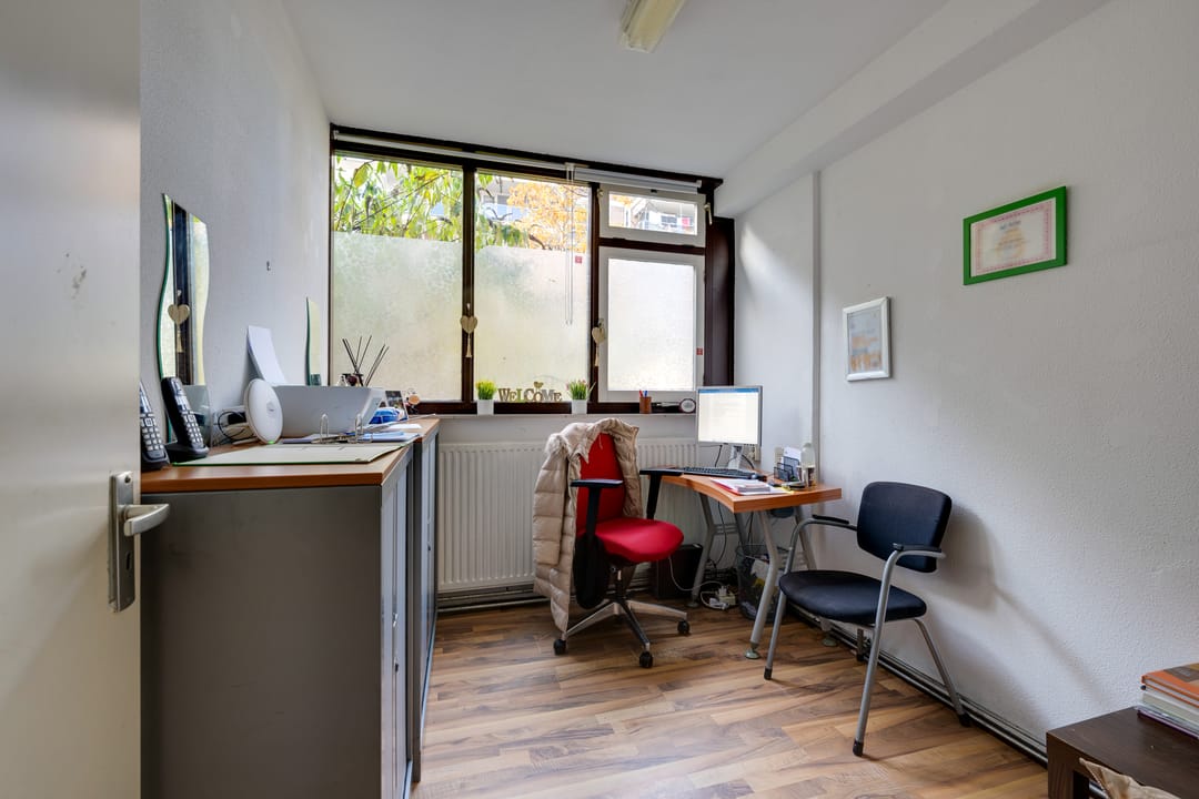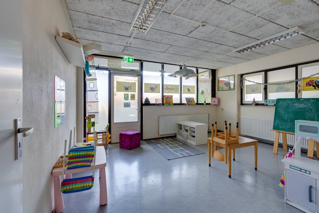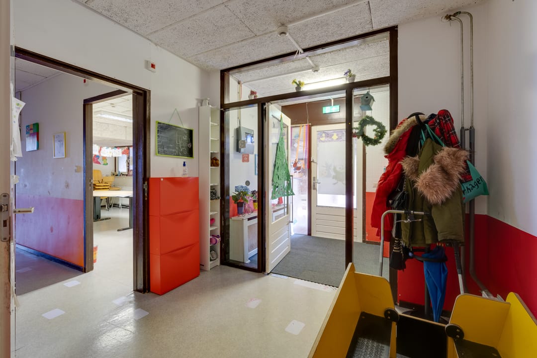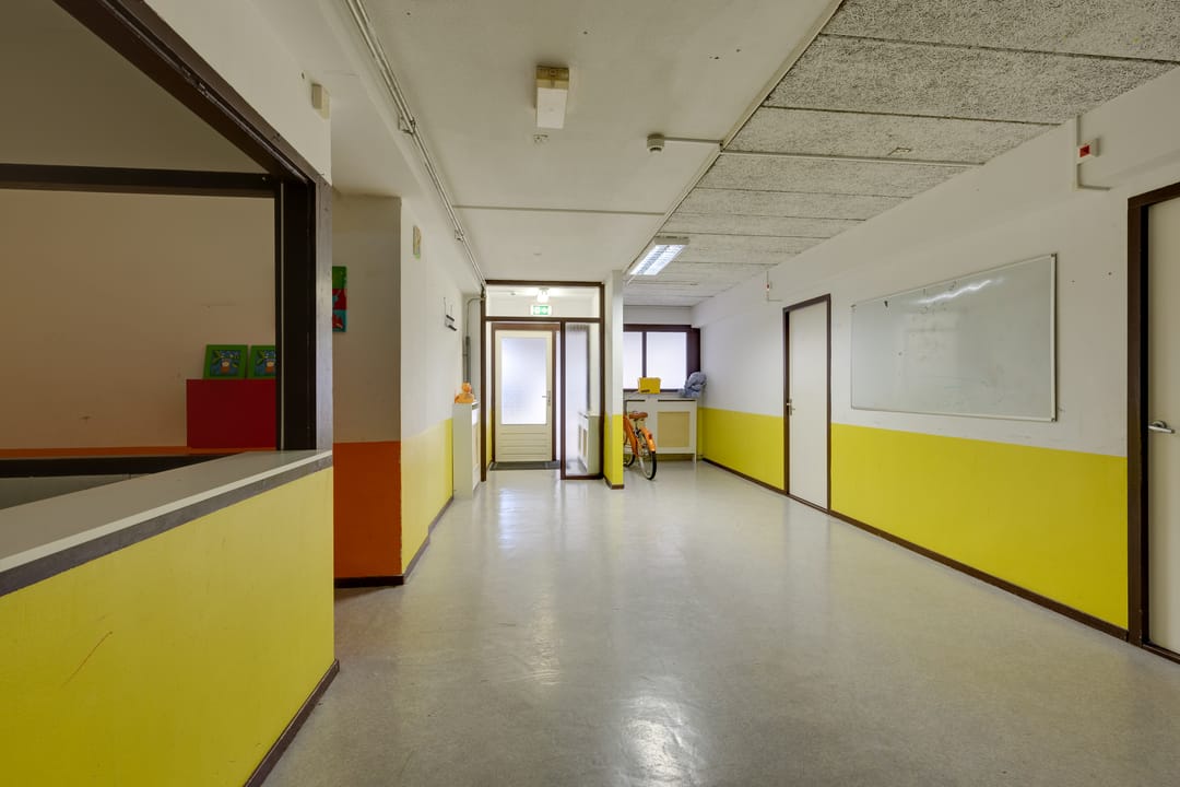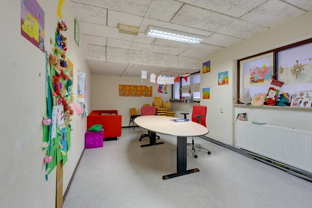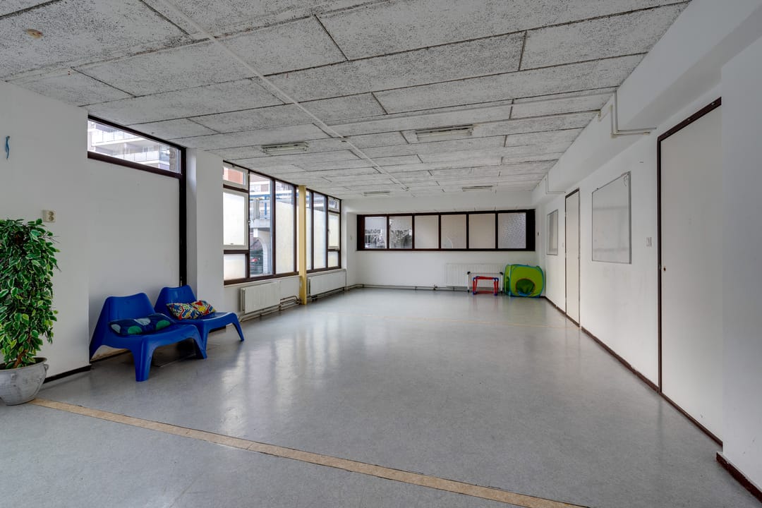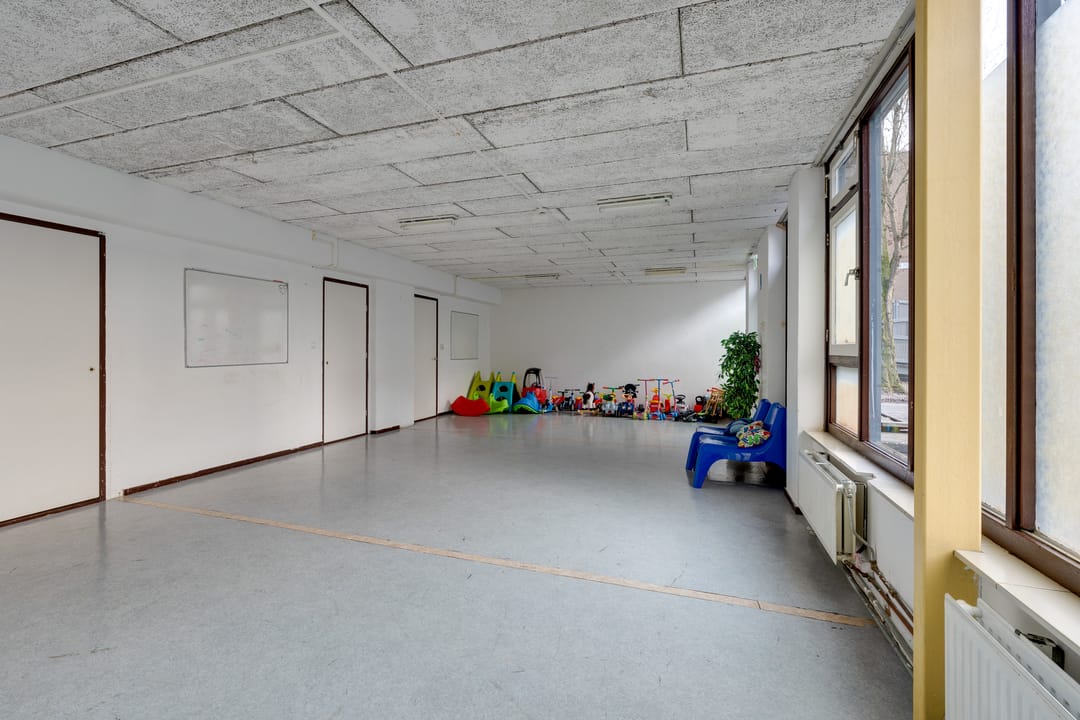 Multifunctionele bedrijfsruimte gelegen op de begane grond met buitenruimte (ca. 150 m2, groter dan op foto) met diverse bestemmingsmogelijkheden waaronder een kinderdagverblijf, winkelruimte en praktijkruimte.