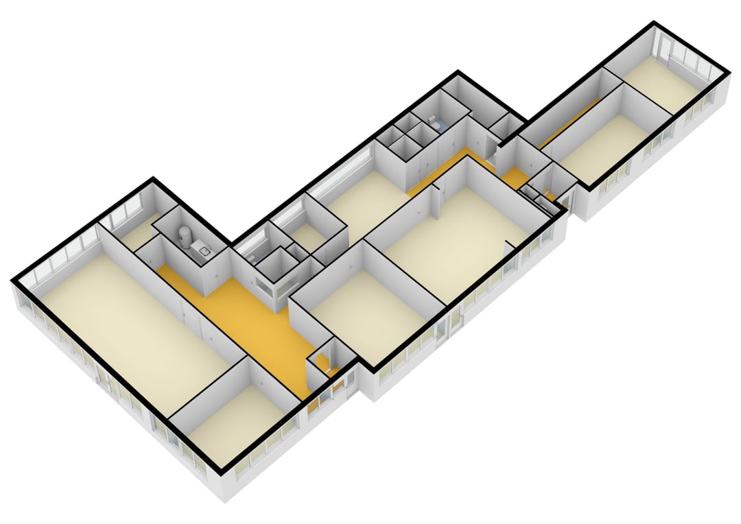 - Te openen ramen, systeemplafond, toilet, pantry, verwarming en kamerindeling