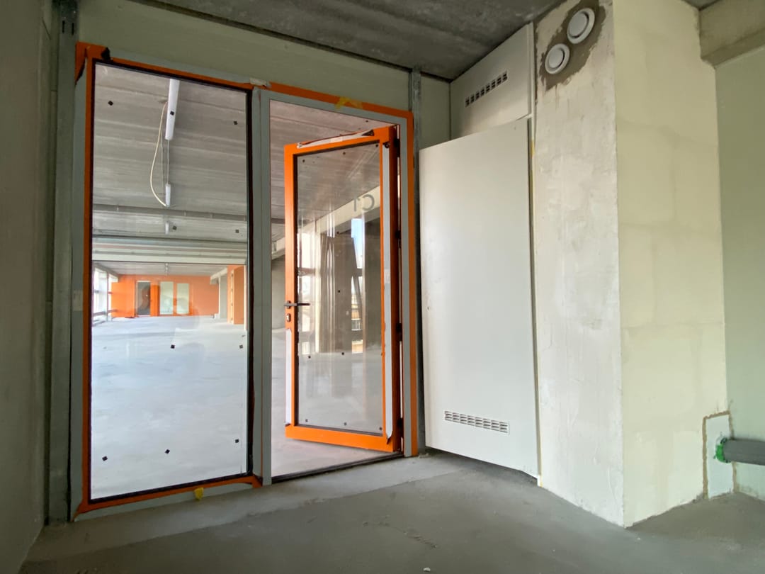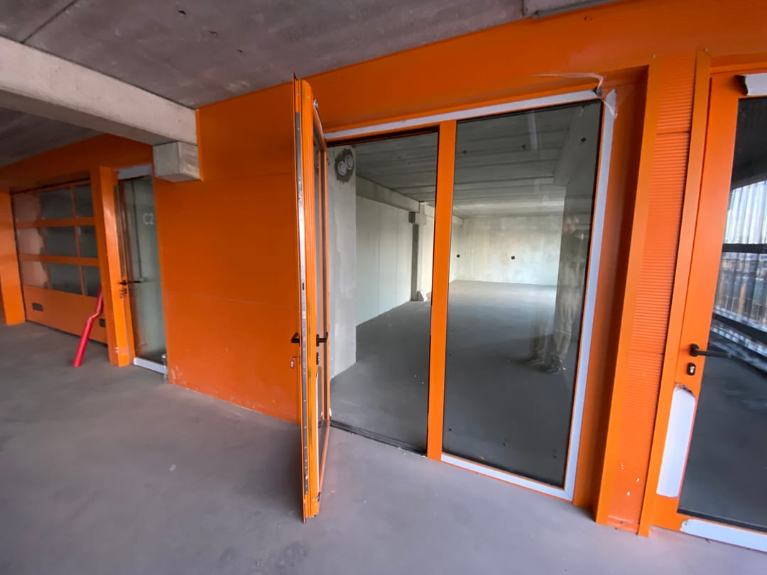 - Doordat de bedrijfsunit is voorzien van een aluminium pui met toegangsdeur heeft het de allure van een kantoor-/werkruimte.