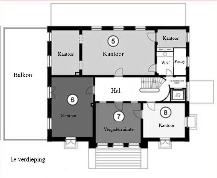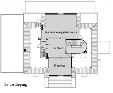 De beschikbare kantoorruimte is gelegen op de eerste en tweede verdieping en omvat:
