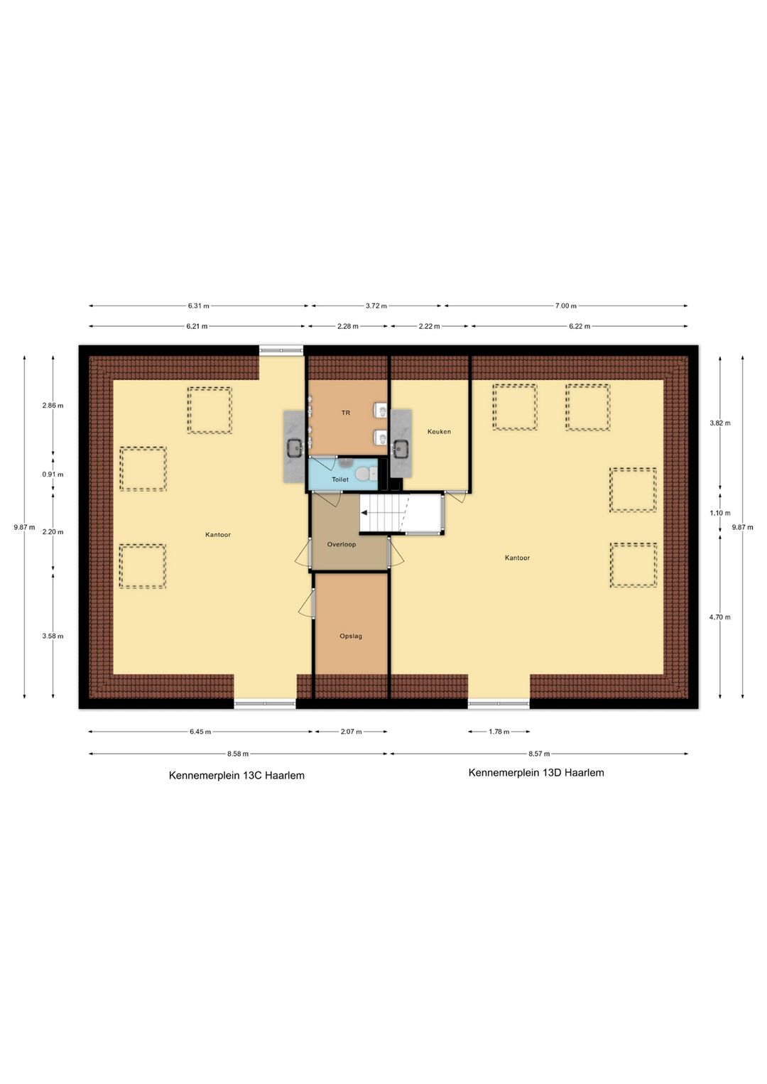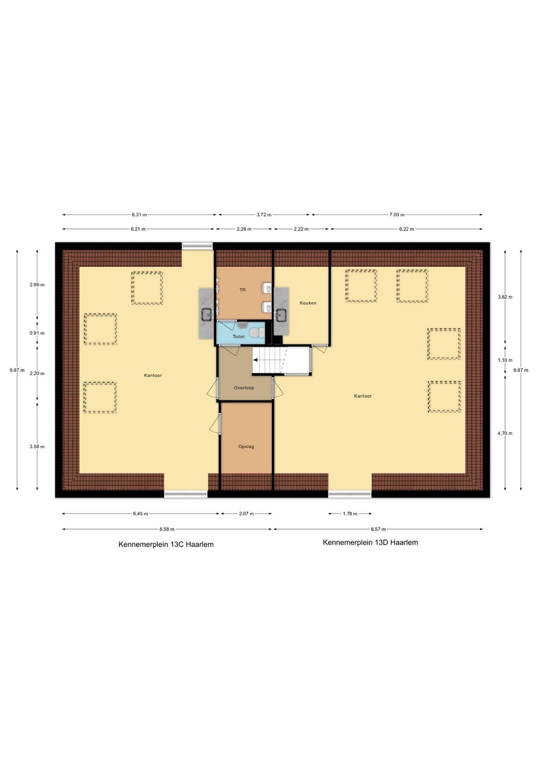 Kennemerplein 13C&D gezamenlijk € 1.500,- per maand.