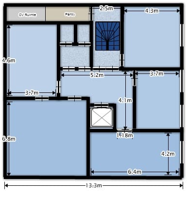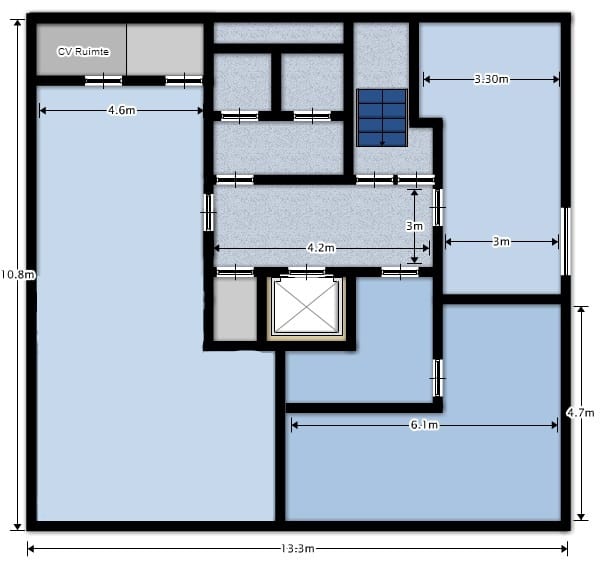 - 3e etage: circa 130 m² + circa 10 m² archiefruimte in het souterrain.