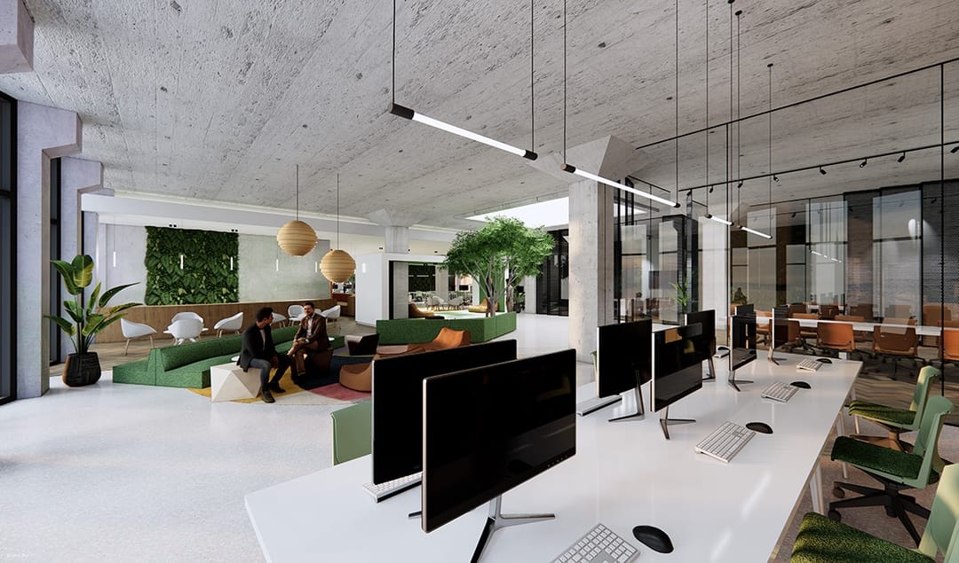 Er zijn in totaal 9 parkeerplaatsen gereserveerd voor de commerciële ruimtes, maar de koper bepaalt zelf het aantal af te sluiten abonnementen. Voorts zijn er circa 40 laadplekken ten behoeve van elektrische auto’s beschikbaar.