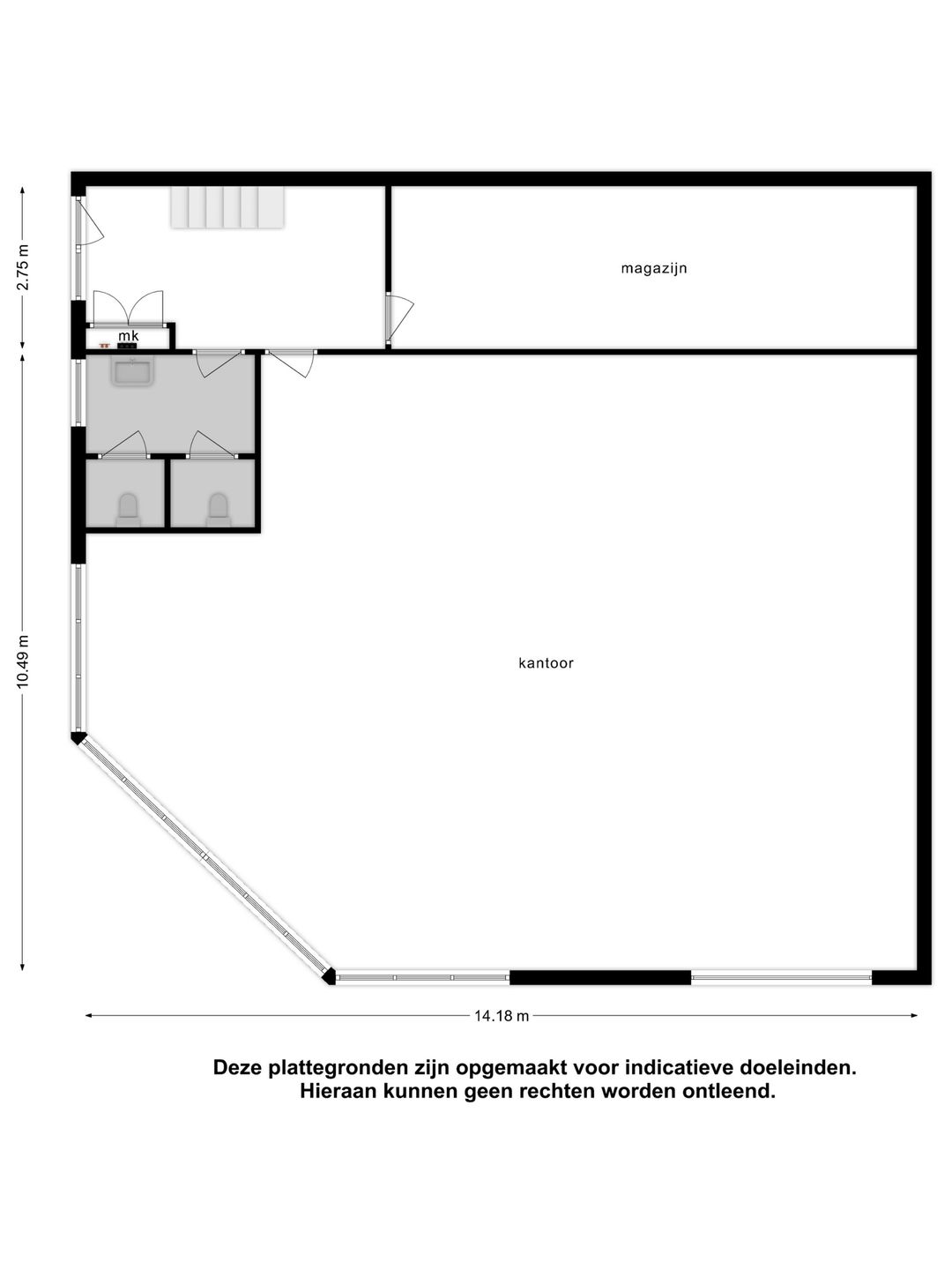 - ca. 186 m² kantoorruimte en magazijnruimte gelegen op de begane grond;