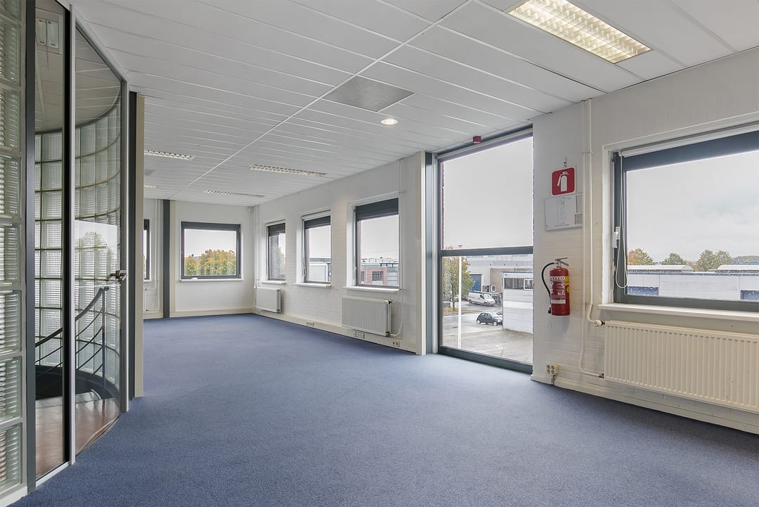 Een gedeelte van een modern, goed onderhouden bedrijfspand, bestaande uit in totaal ca. 1.082 m² kantoorruimte verdeeld over de begane grond en de eerste verdieping. Het object is gelegen op een prominente hoeklocatie aan een van de doorgaande wegen op het bedrijventerrein ‘Lorentz’.