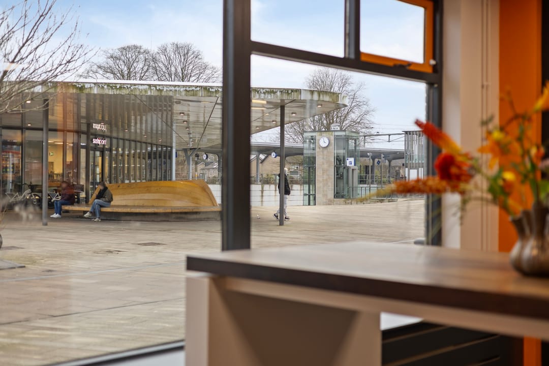 Gelegen direct tegenover het NS- en busstation en nabij uitvalswegen en de snelweg A28.
