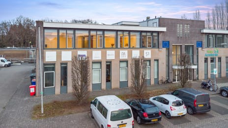 Kantoorruimtes in een BEDRIJFSVERZAMELGEBOUW gelegen op de hoek van de Van Leeuwenhoekstraat.