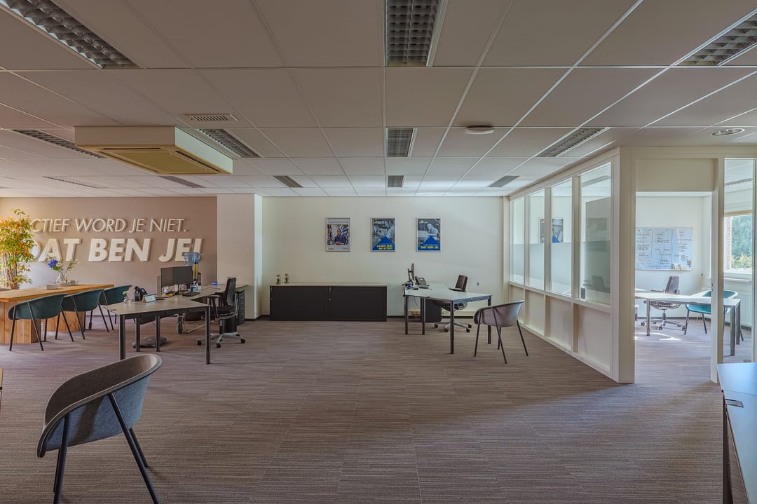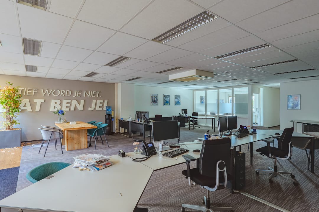 - Te openen ramen, kabelgoten, systeemplafond, toilet, pantry, verwarming en kamerindeling