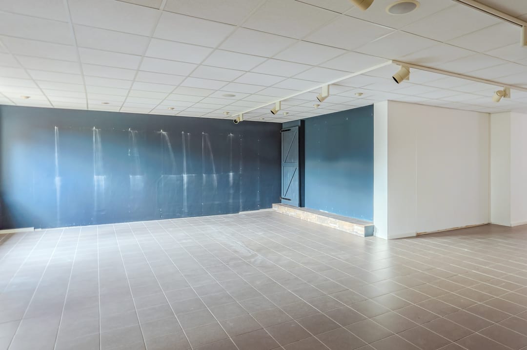 Deze ruimte beschikt over een grote kantoor/winkelruimte met daglicht aan zowel de voorzijde als achterzijde. Daarbij is een aparte (kantine)ruimte aanwezig. Via deze ruimte is het schitterde balkon/terras bereikbaar.