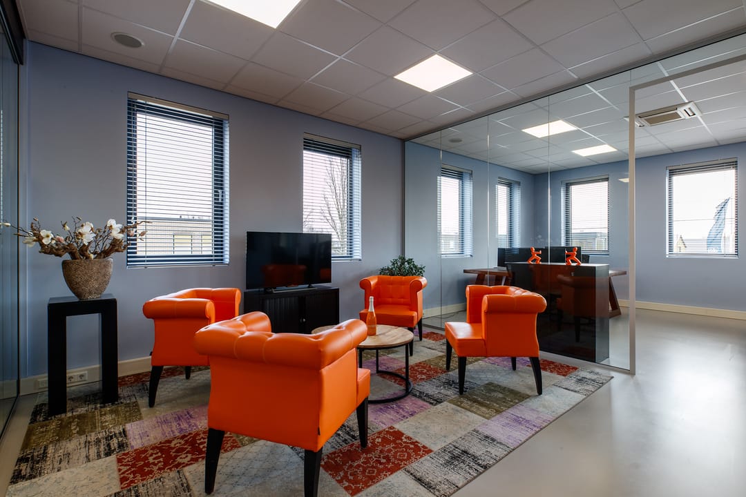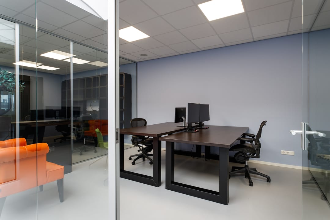 • 12 luxe bureaus met ergonomische stoelen;