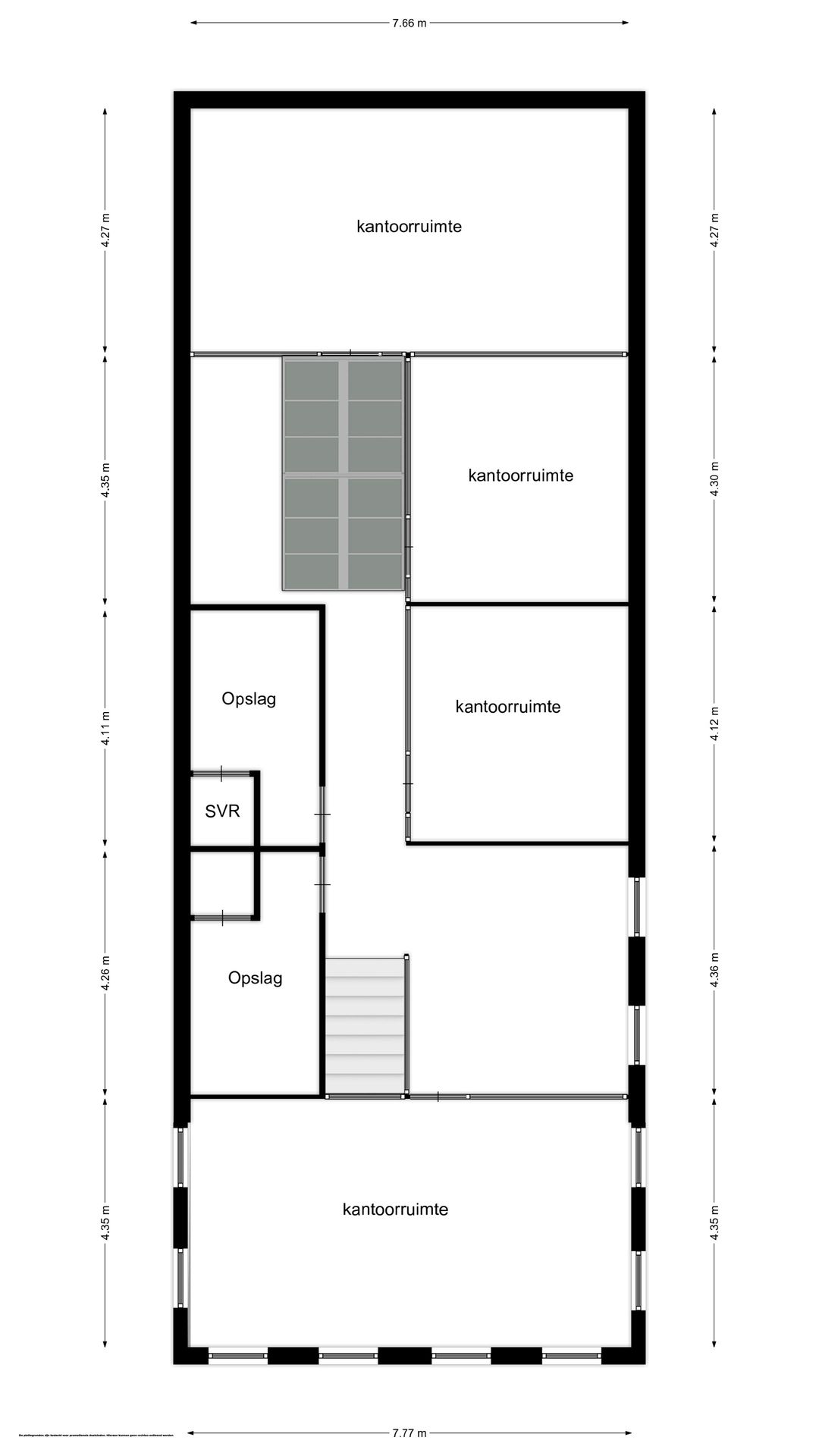 Deze bevindt zich aan de achterzijde van het pand en is ca. m² groot. De huur van deze ruimte bedraagt € 500,- excl. btw en verbruikskosten per maand