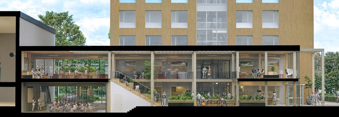Dit moderne, nog te realiseren gebouw biedt een inspirerende werkplek voor organisaties die geloven in een toekomstbestendige werkomgeving en die circulaire principes willen beleven én uitdragen.