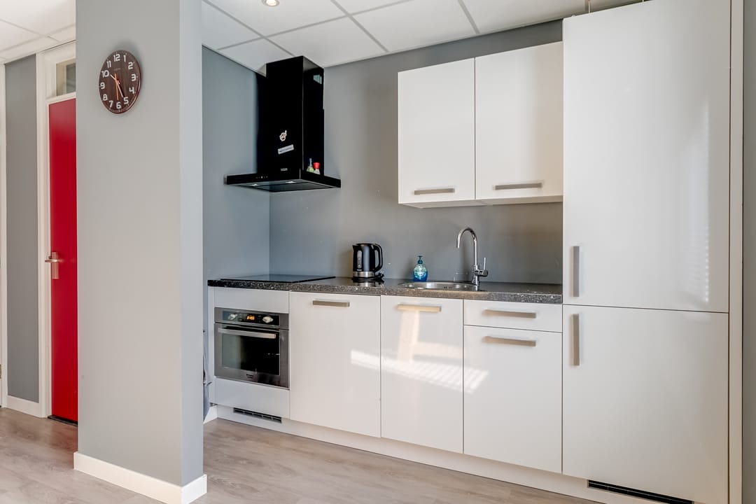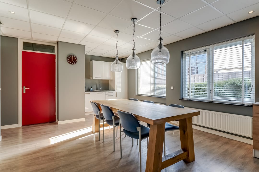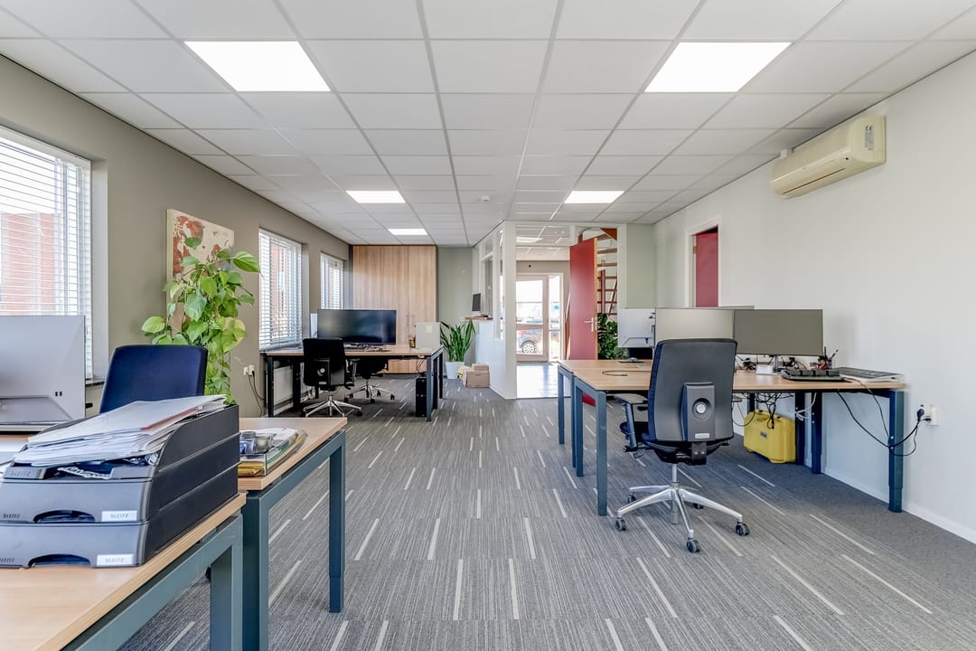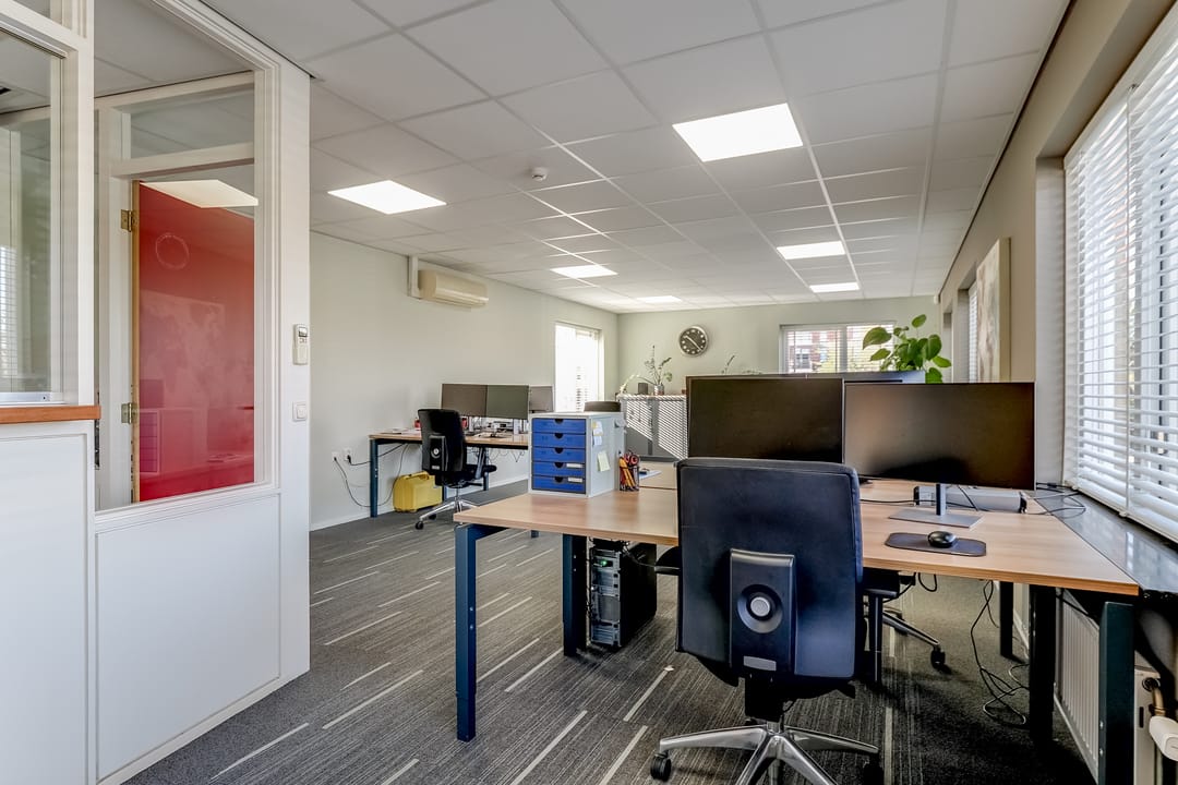 - Airconditioning, inbouwarmaturen, te openen ramen, kabelgoten, systeemplafond, toilet, pantry, verwarming en kamerindeling