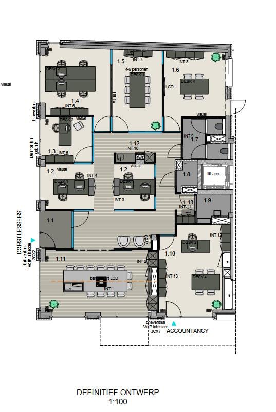 Instapklaar kantoorpand met complete inventaris en moderne voorzieningen.