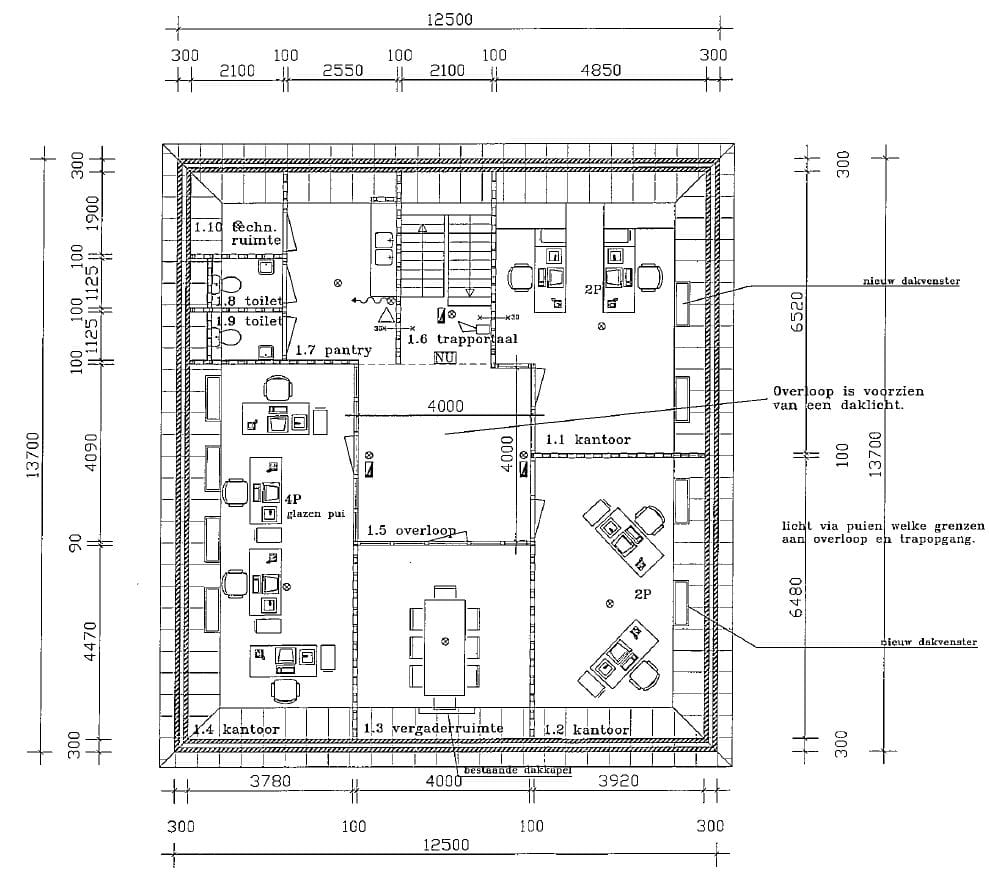 De eerste verdieping is volledig ingericht als kantoorruimte en biedt voldoende plek voor meerdere werkplekken, overlegfaciliteiten of administratieve functies. De ruimte verkeert in een nette staat van onderhoud en leent zich uitstekend voor zakelijke activiteiten in een professionele en representatieve omgeving.