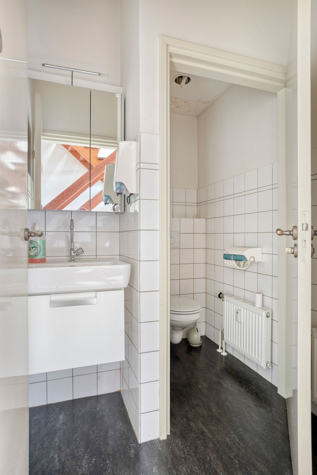 De eerste verdieping is volledig ingericht als kantoorruimte en biedt voldoende plek voor meerdere werkplekken, overlegfaciliteiten of administratieve functies. De ruimte beschikt over een nette staat van onderhoud en leent zich uitstekend voor zakelijke activiteiten in een professionele, representatieve omgeving.